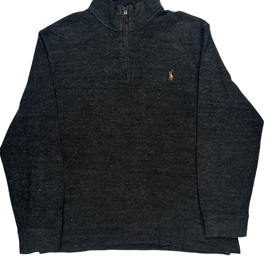 Polo By Ralph Lauren 1/4 Zip - Large Grey Cotton Blend