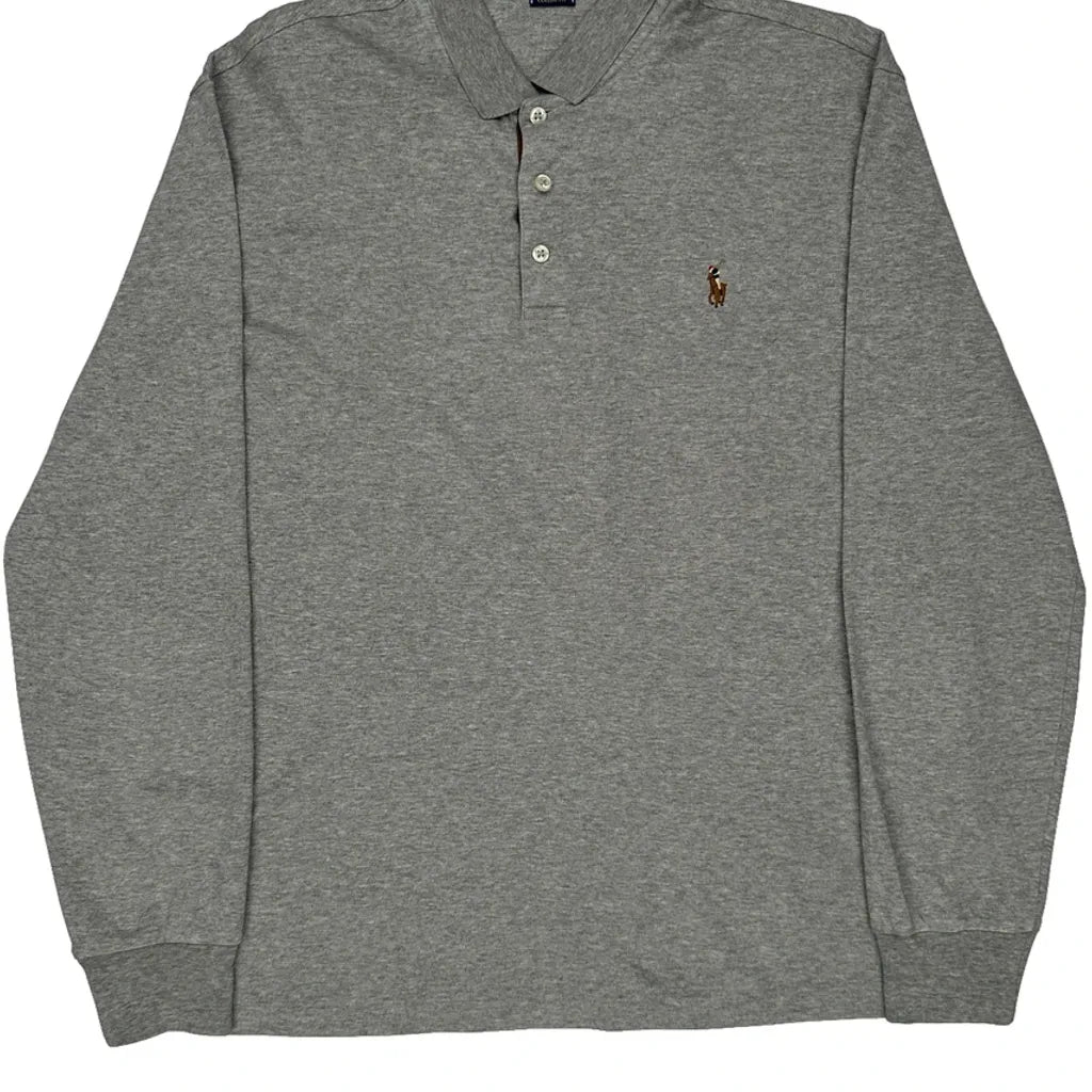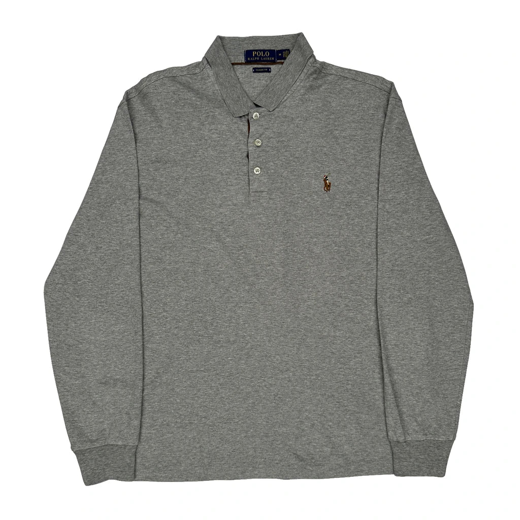 Polo By Ralph Lauren Long Sleeve Polo Shirt - Medium Grey Cotton