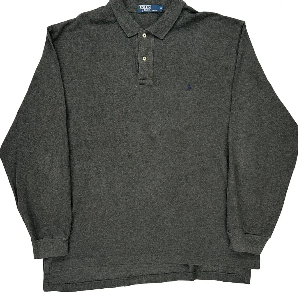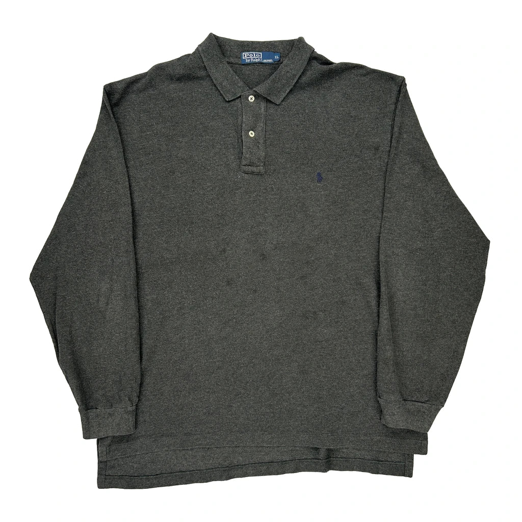 Polo By Ralph Lauren Long Sleeve Polo Shirt - XL Grey Cotton