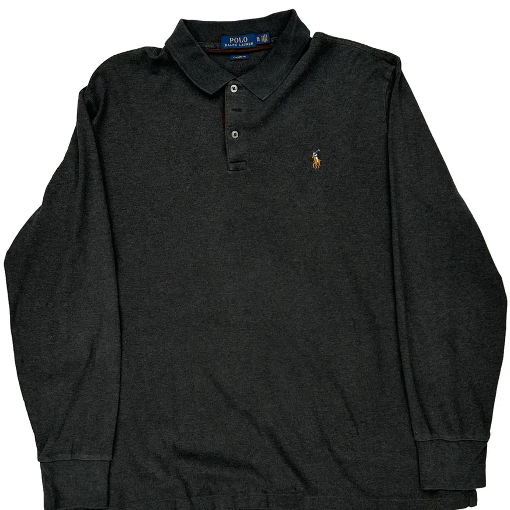 Polo By Ralph Lauren Long Sleeve Polo Shirt - XL Grey Cotton