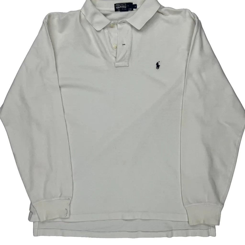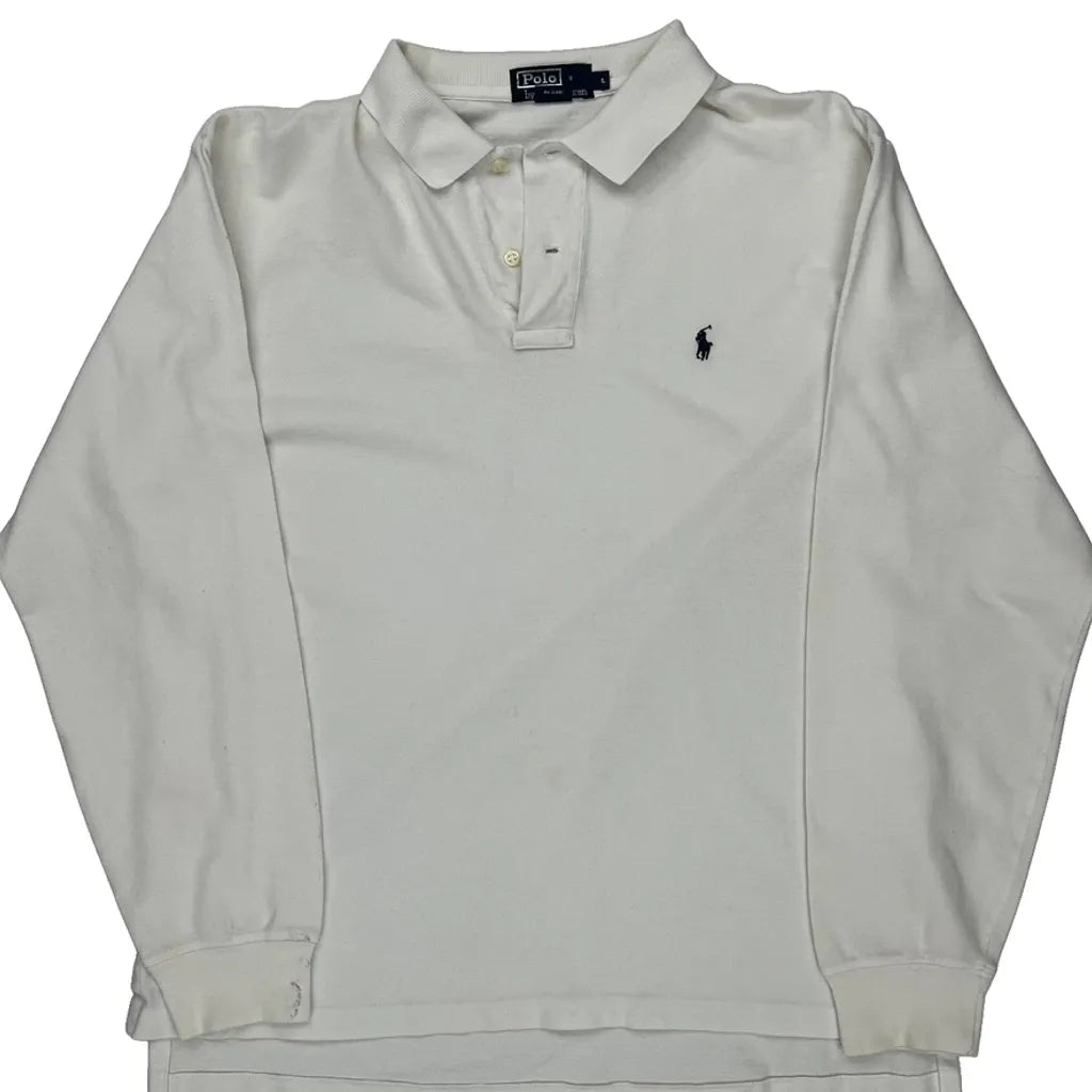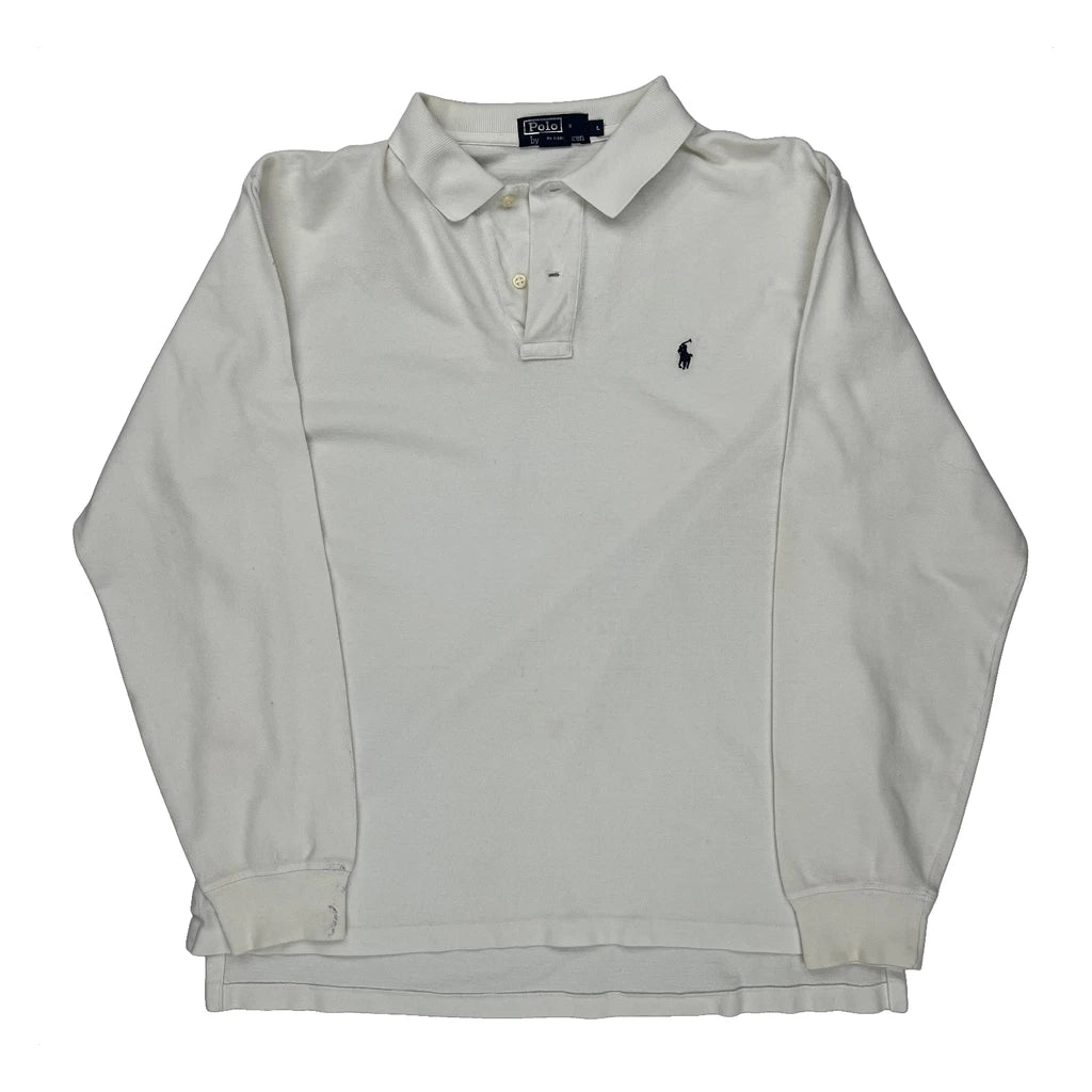 Polo By Ralph Lauren Long Sleeve Polo Shirt - Large White Cotton
