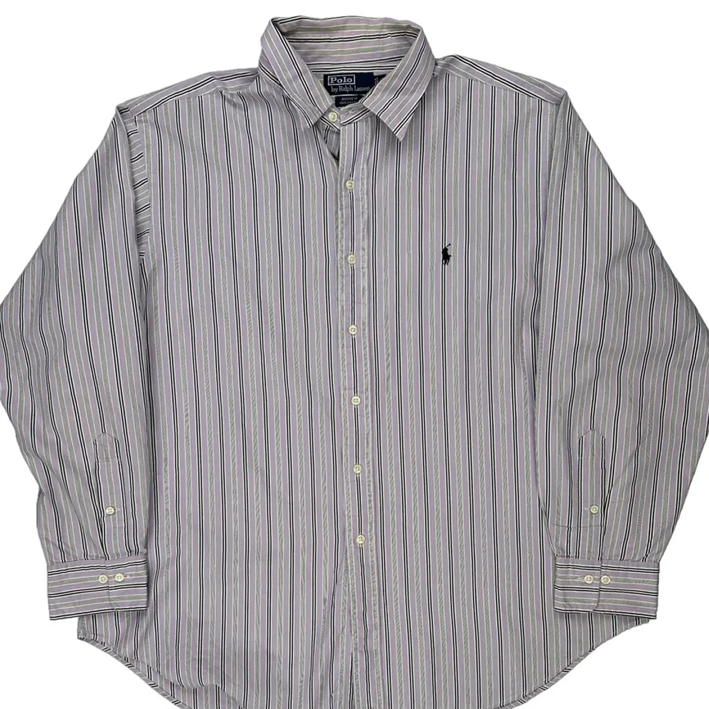 Polo By Ralph Lauren Striped Shirt - XL Purple Cotton