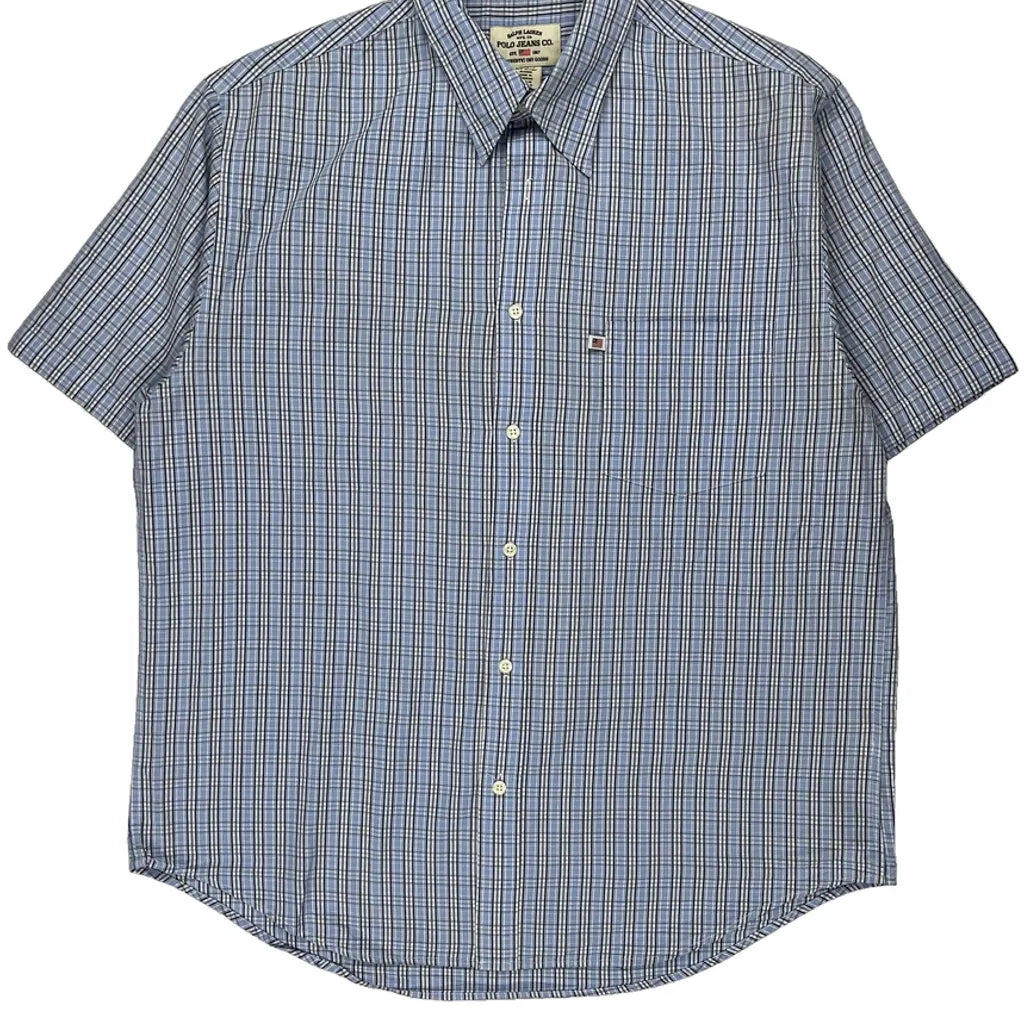 Polo By Ralph Lauren Checked Short Sleeve Shirt - XL Blue Cotton