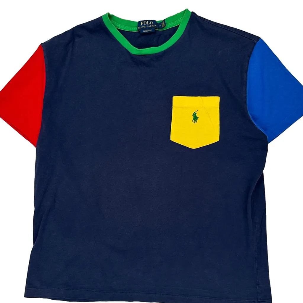 Colour Block Design With A Yellow Pocket And Green Collar