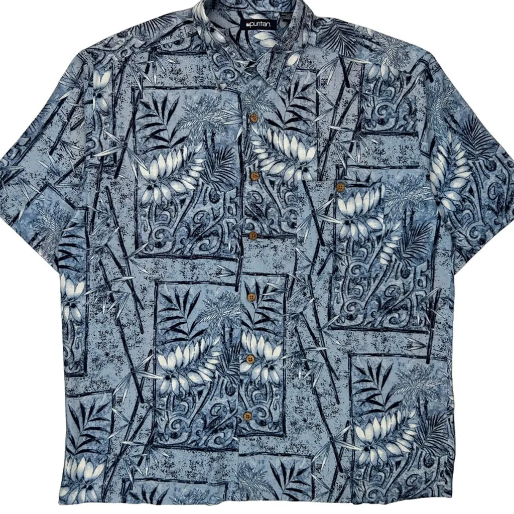 Puritan Floral Hawaiian Shirt - Large Blue Viscose