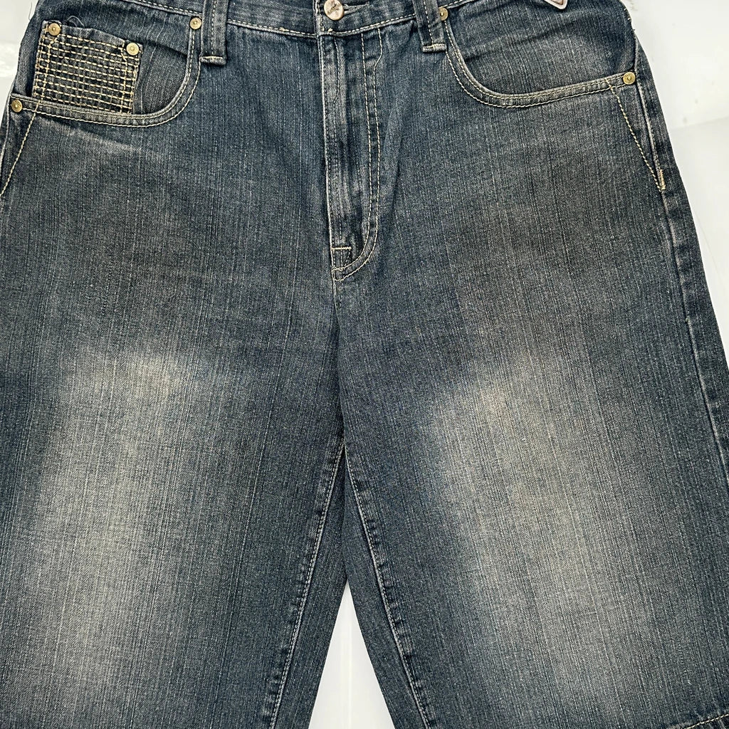 Raider Denim Shorts - 34W 12L Grey Cotton