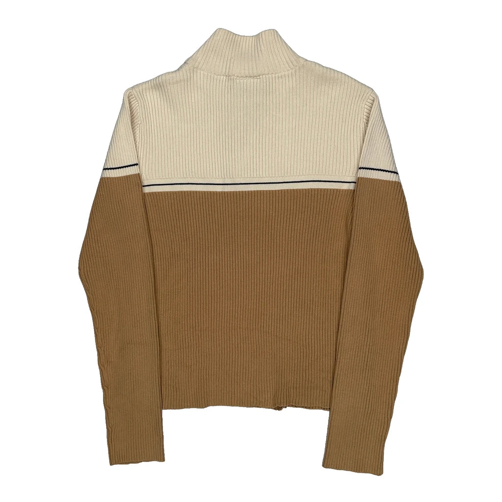 Ralph Lauren Striped 1/4 Zip - Large Brown Cotton