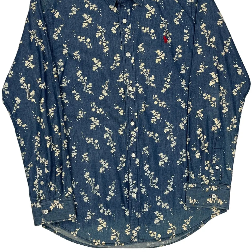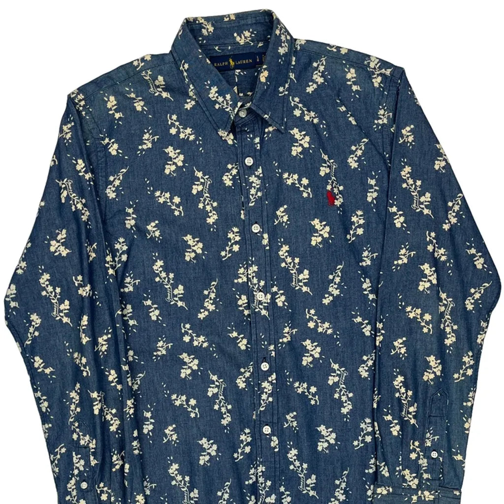 Ralph Lauren Floral Patterned Shirt - Large Blue Cotton