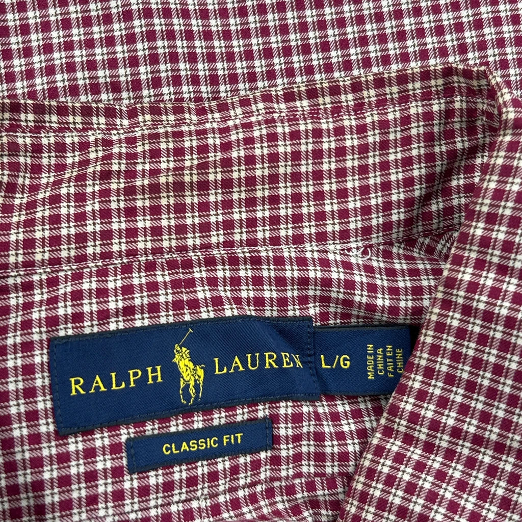 Ralph Lauren Checked Shirt - Large Burgundy Cotton
