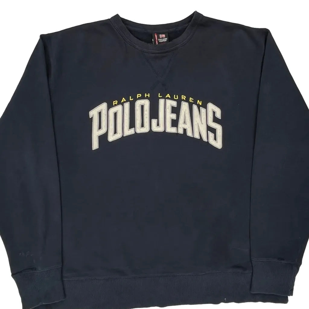 Ralph Lauren Spellout Sweatshirt - XL Navy Cotton Blend