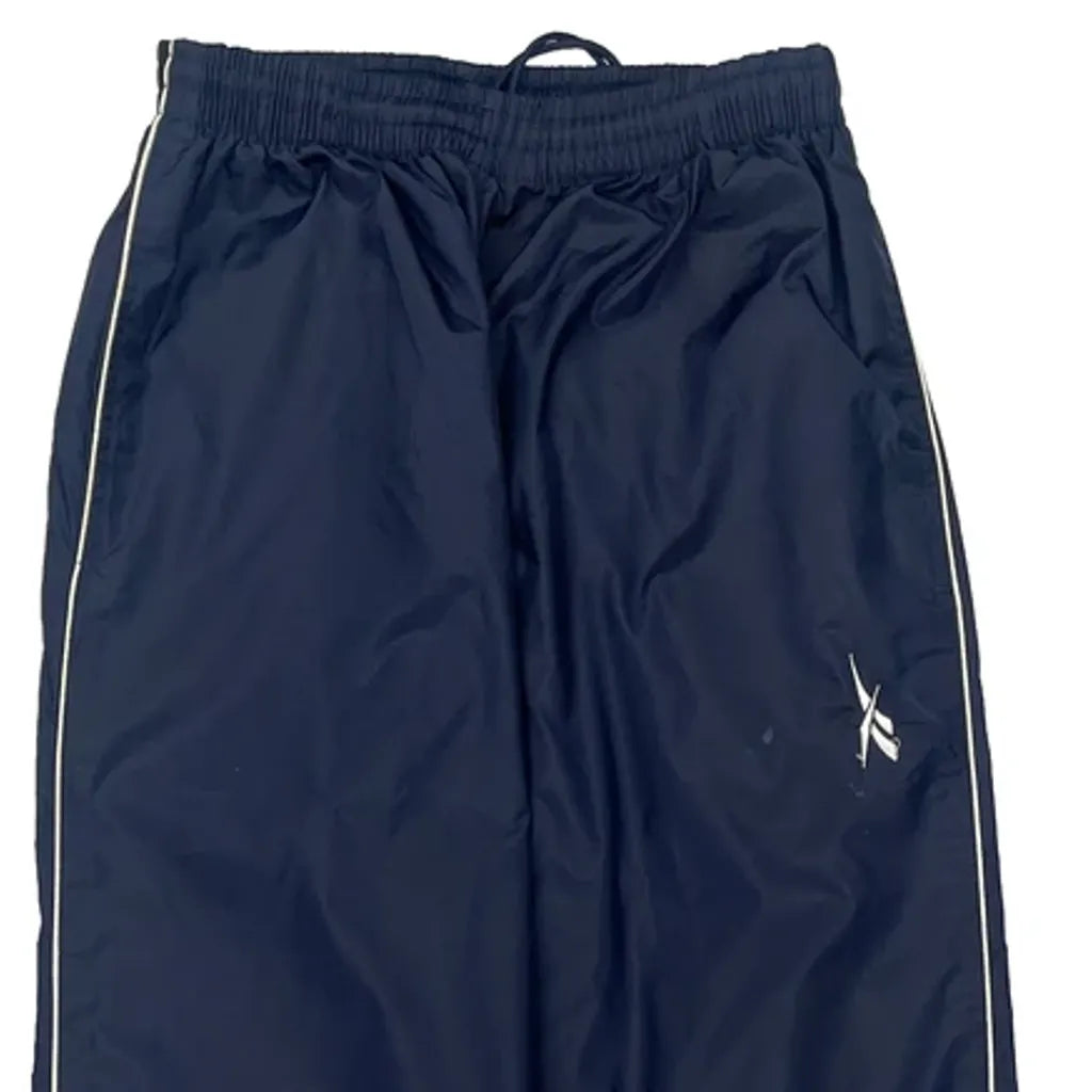 Navy Blue Tracksuit Bottoms With White Piping And Reebok Logo.