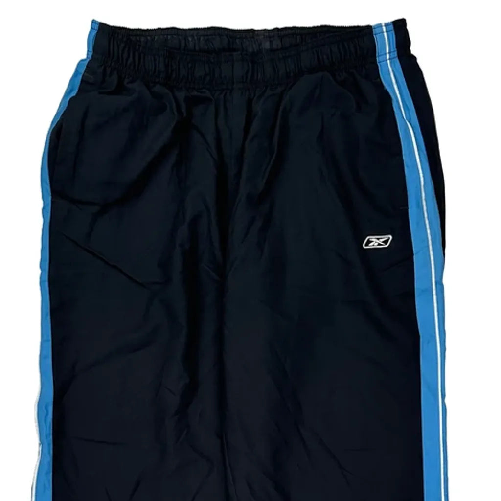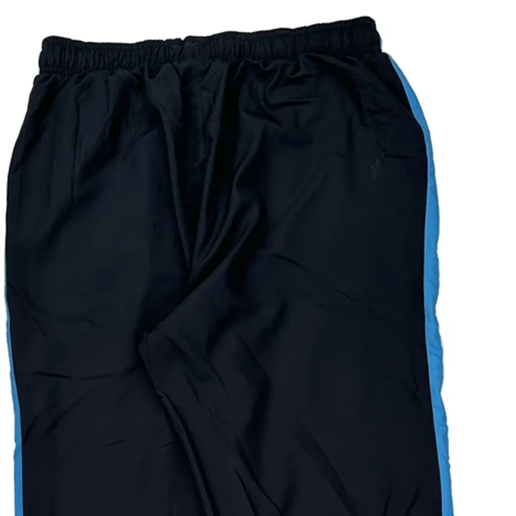 Black Tracksuit Bottoms With Blue Side Stripes.