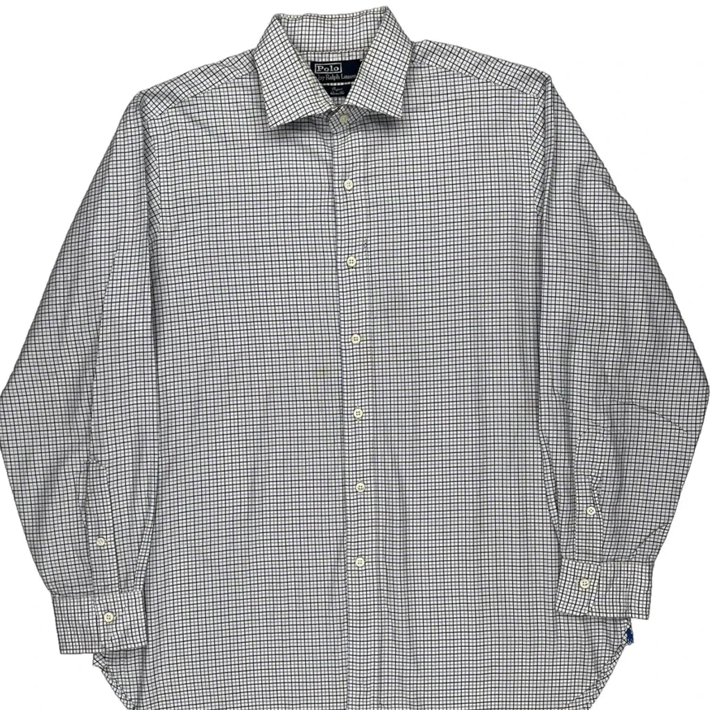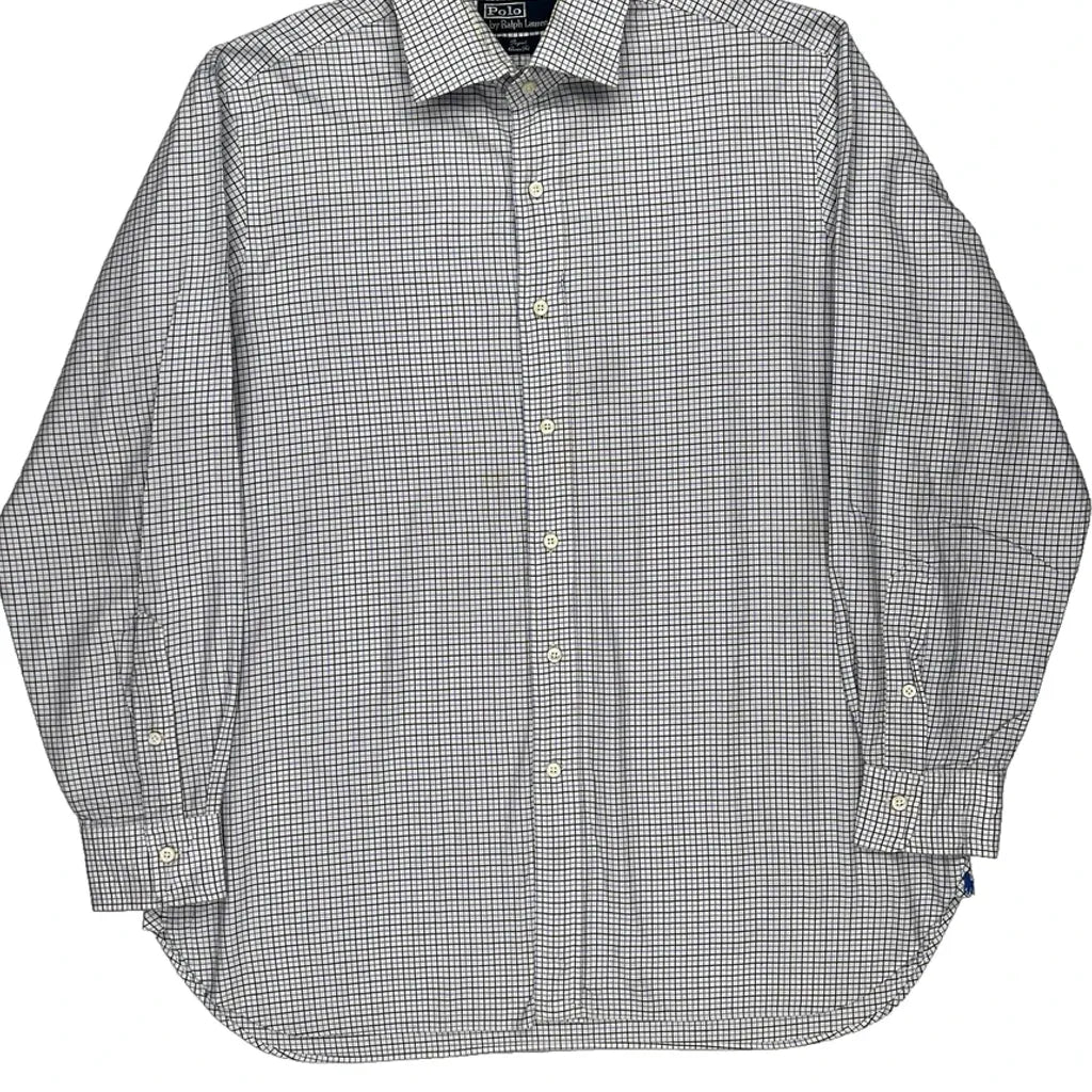 Regent Classic Fit Polo By Ralph Lauren Checked Shirt - Large Blue Cotton