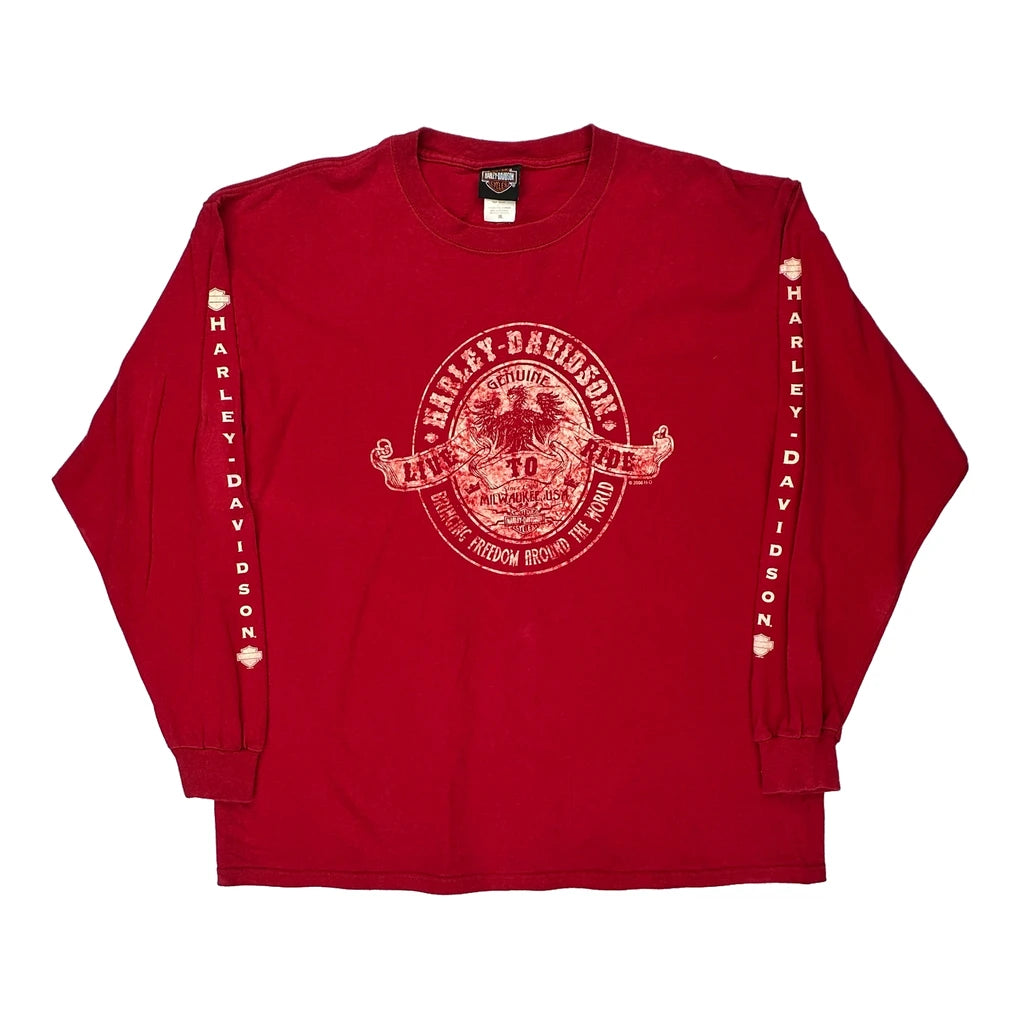 Rocket Harley Davidson Graphic Long Sleeve T-Shirt - XL Red Cotton