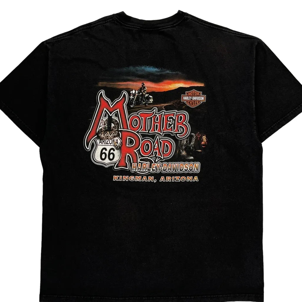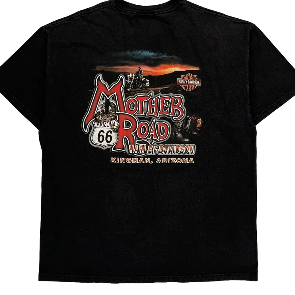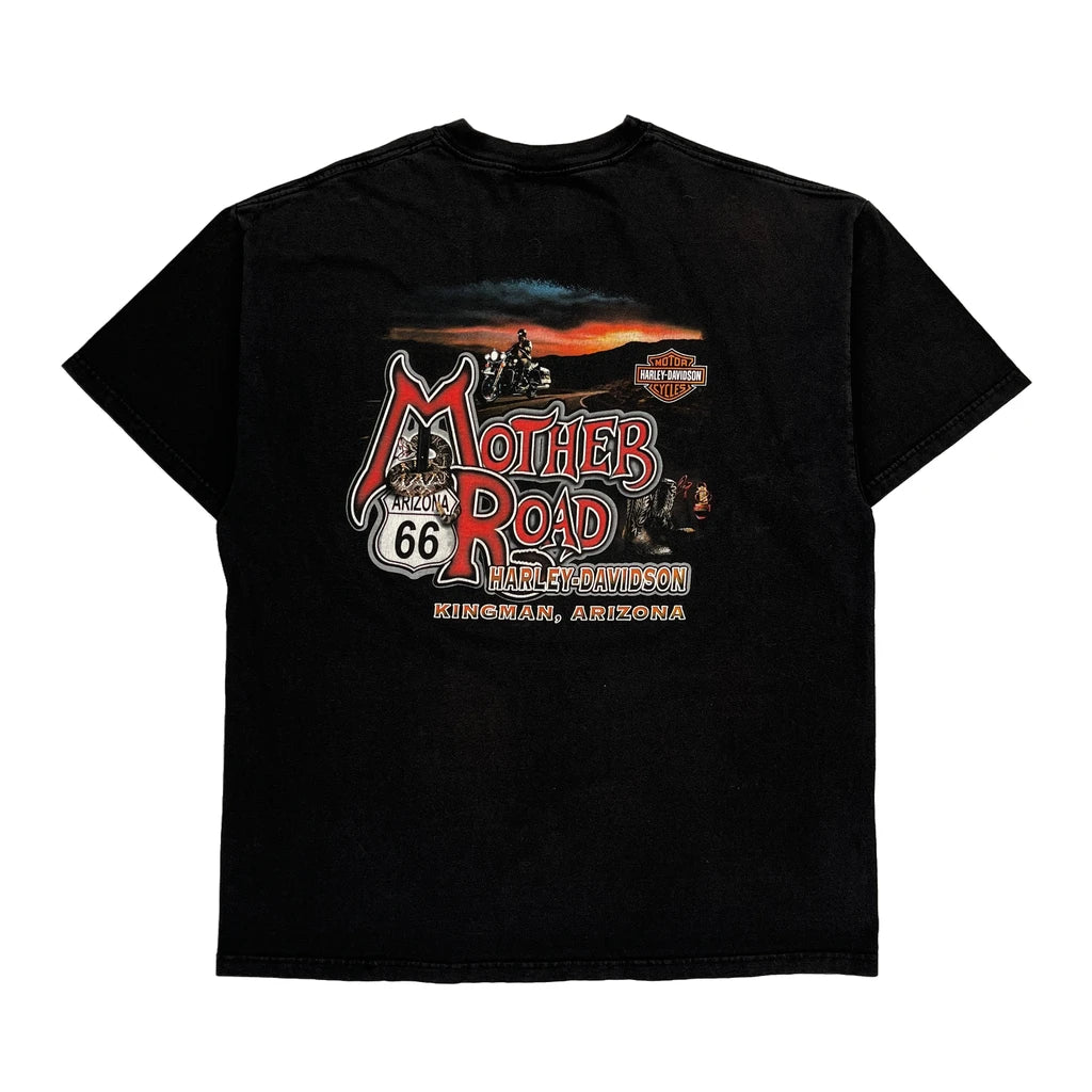 Route 66 Harley Davidson Graphic T-Shirt - XL Black Cotton