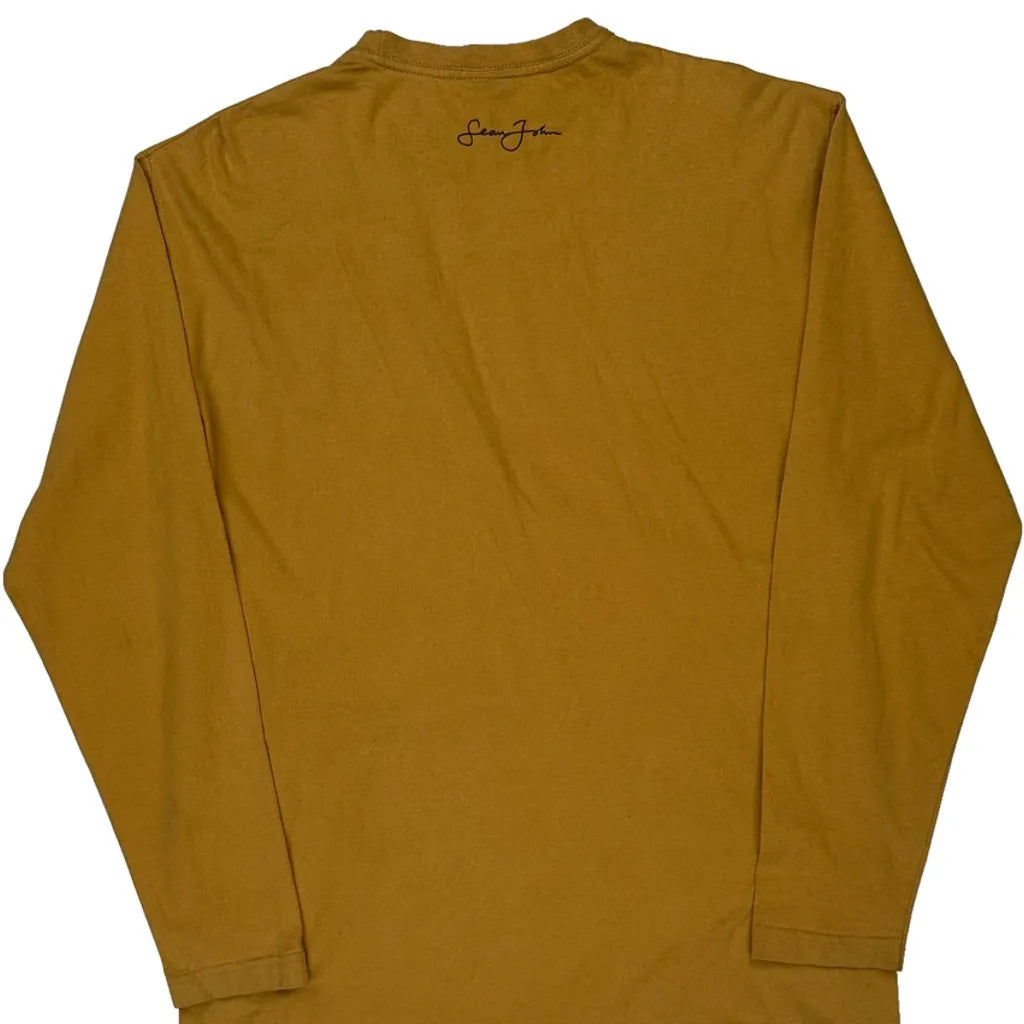 Sean John Spellout Long Sleeve T-Shirt - Medium Brown Cotton