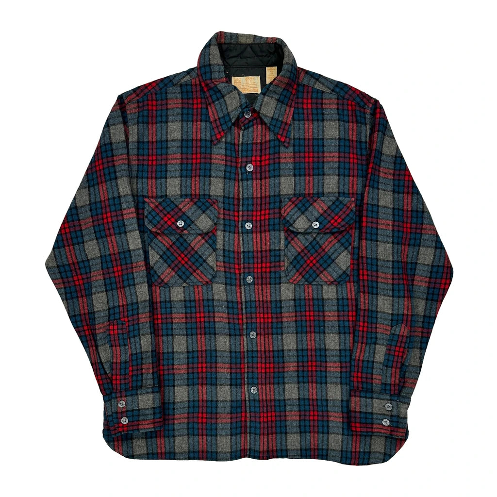 Sears Checked Flannel Shirt - Medium Blue Wool Blend