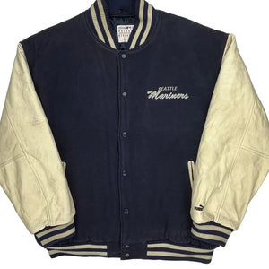 Seattle Mariners Puma Mlb Varsity Jacket - Large Cream Leather