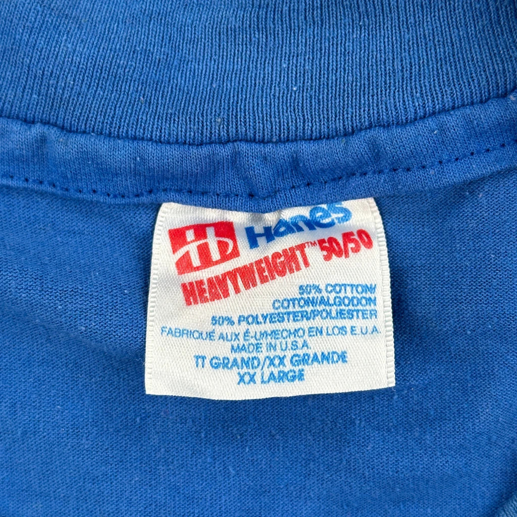 Single Stitch Hanes Graphic T-Shirt - 2XL Blue Cotton Blend