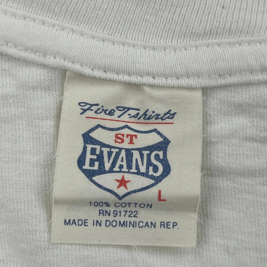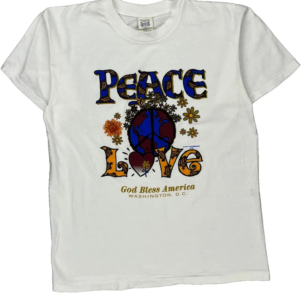 Single Stitch Peace Love St Evans Graphic T-Shirt - Large White Cotton