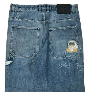 Features A Graphic Of A Person With Headphones On The Back Pocket.
