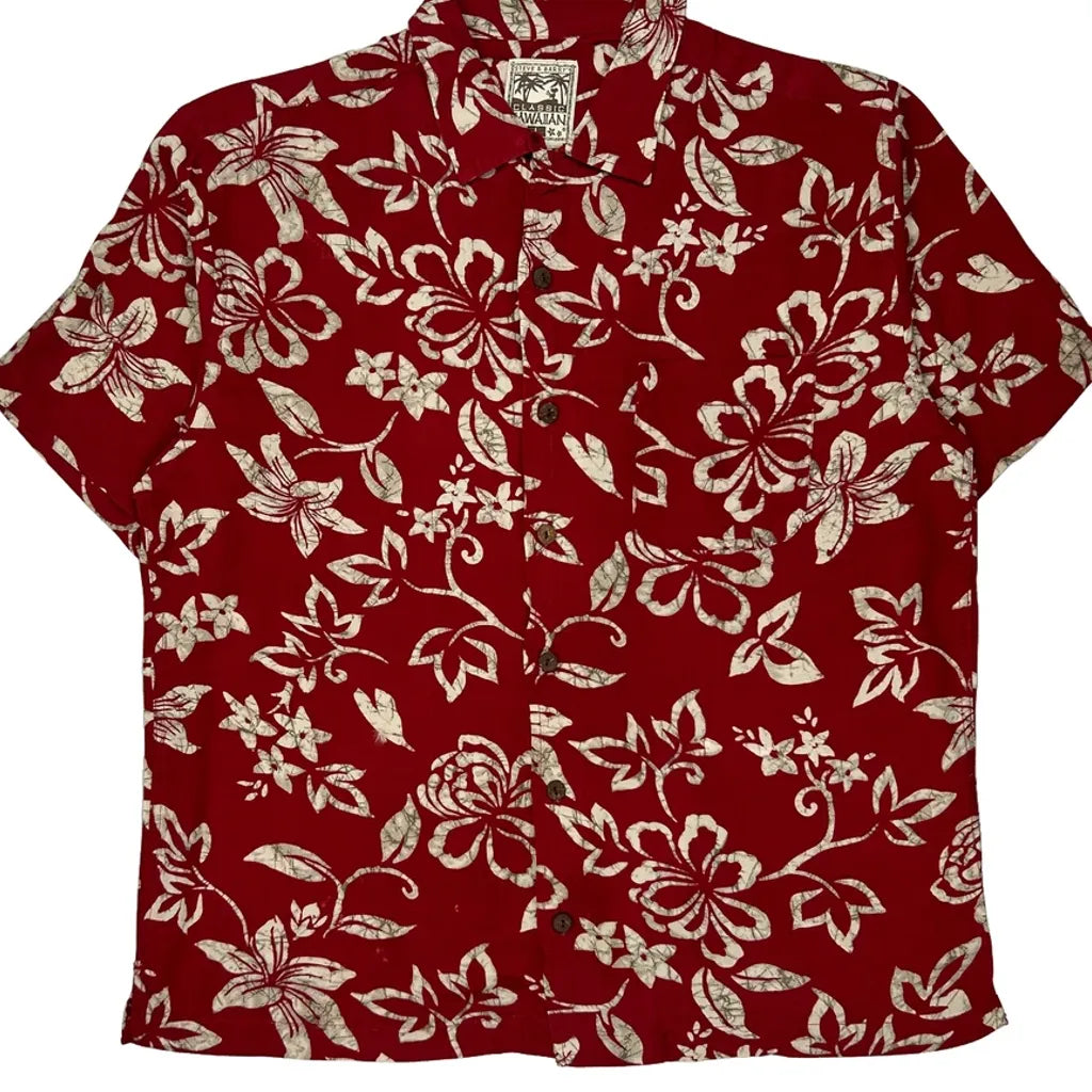 Steve & Barry Floral Hawaiian Shirt - Large Red Viscose
