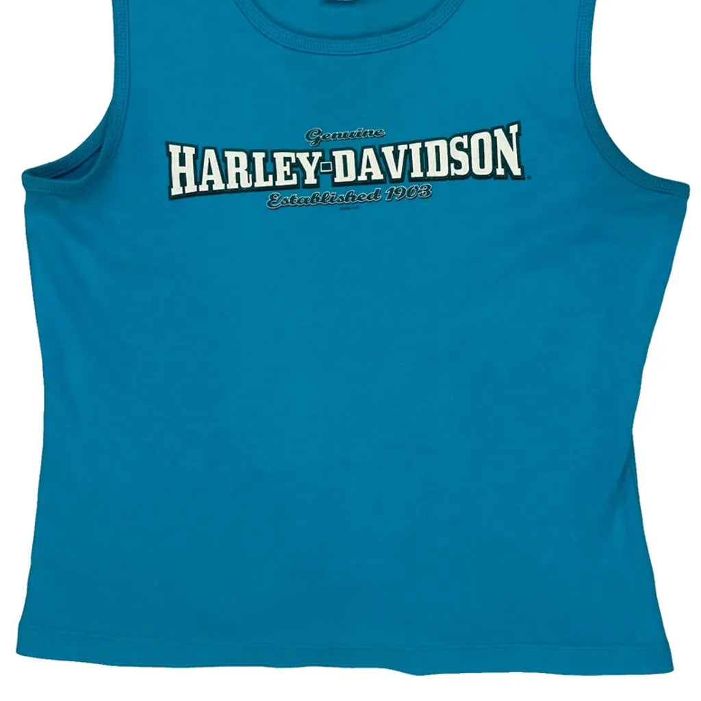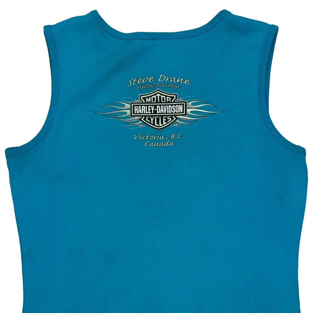 Steve Drane Harley Davidson Graphic Vest - Large Blue Cotton