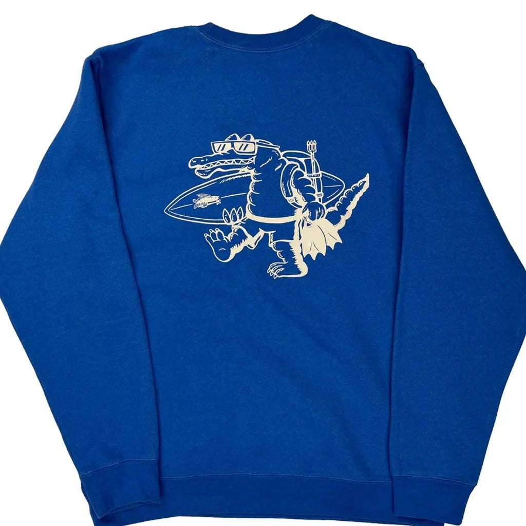 Blue Sweatshirt With A Surfing Alligator Graphic On The Back