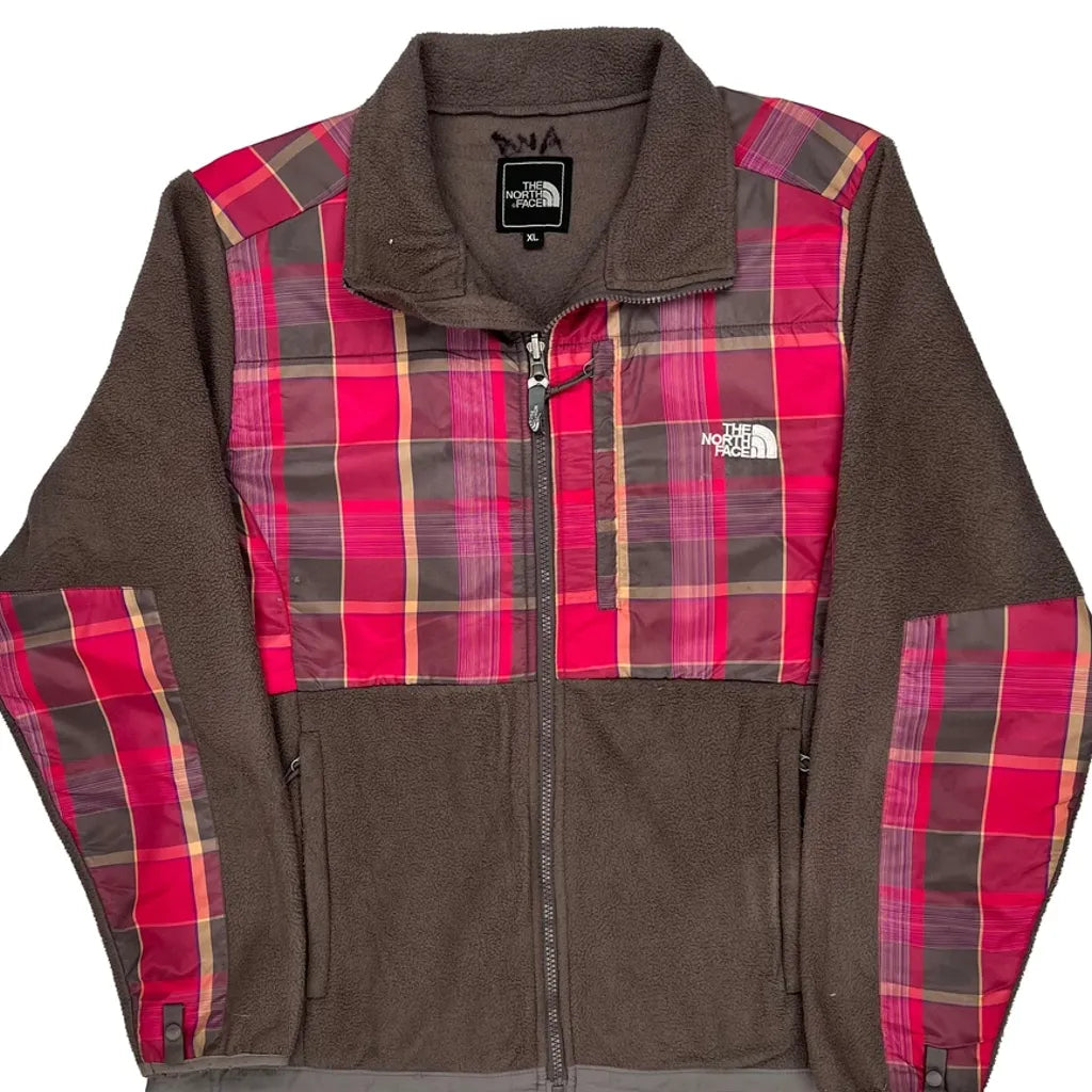 The North Face Checked Fleece Jacket - XL Brown Polyester