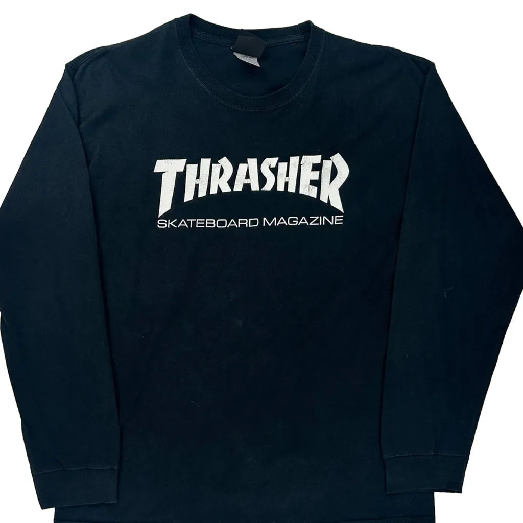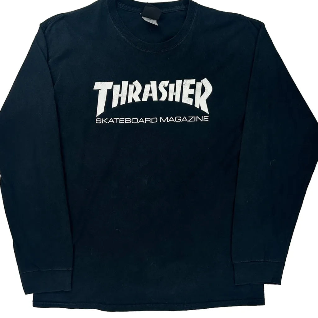 Thrasher Spellout Long Sleeve T-Shirt - Large Black Cotton