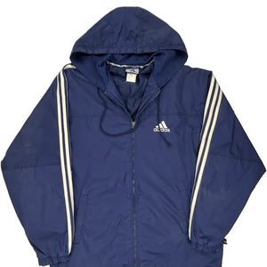 Three Stripes Adidas Striped Windbreaker - Small Blue Polyamide
