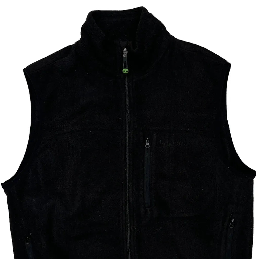 Black Timberland Gilet With Zipper Closure, High Neck, And No Visible Marks.