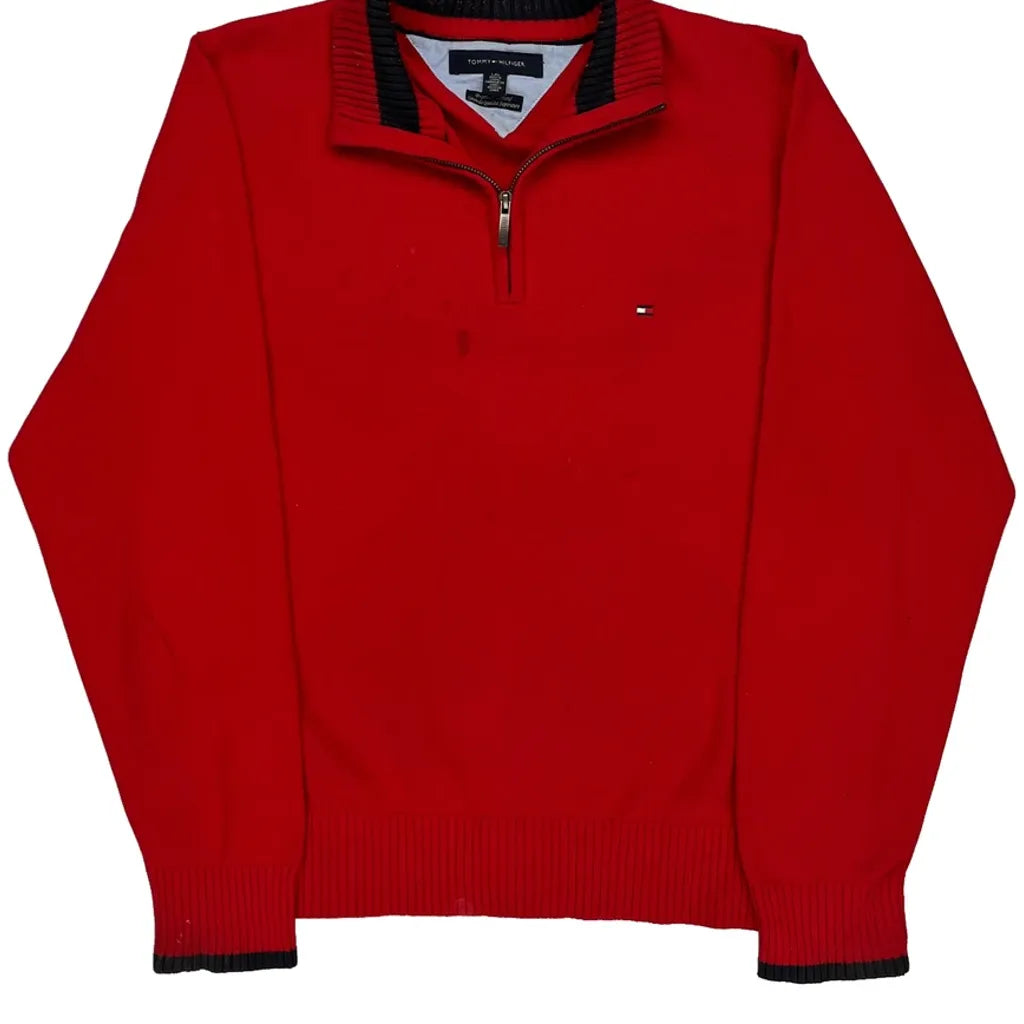 Tommy Hilfiger 1/4 Zip - Large Red Cotton
