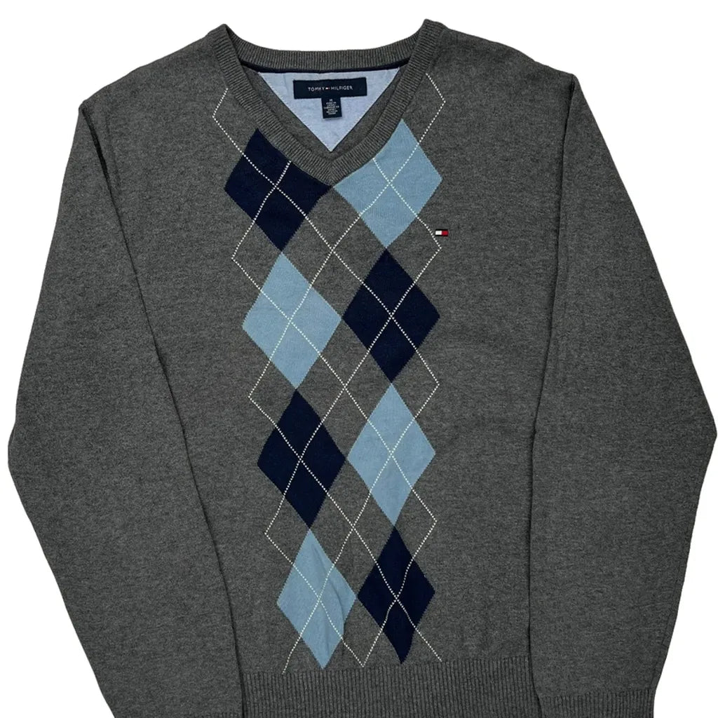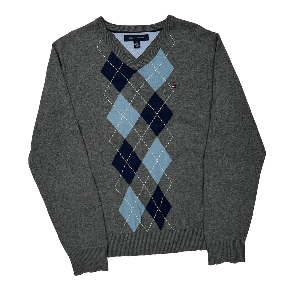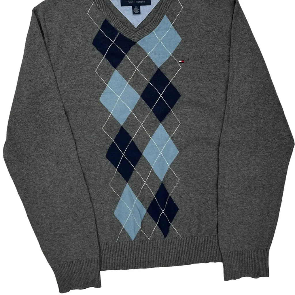Tommy Hilfiger Argyle Jumper - Medium Grey Cotton