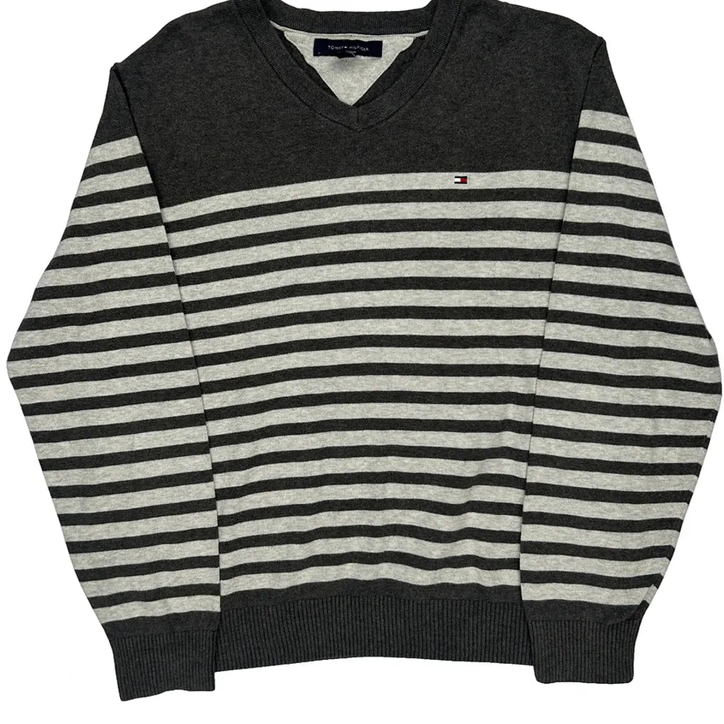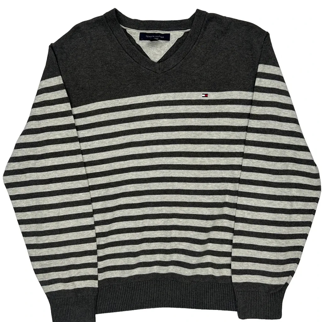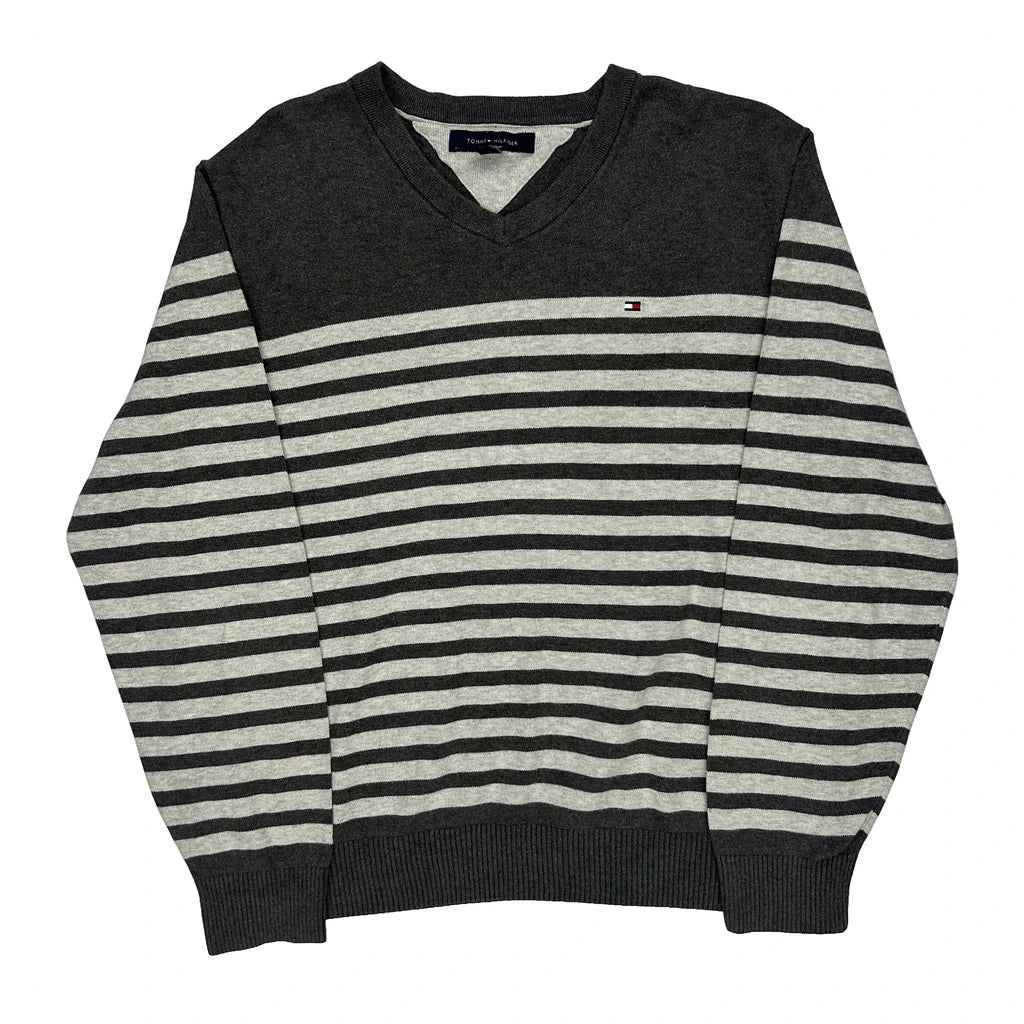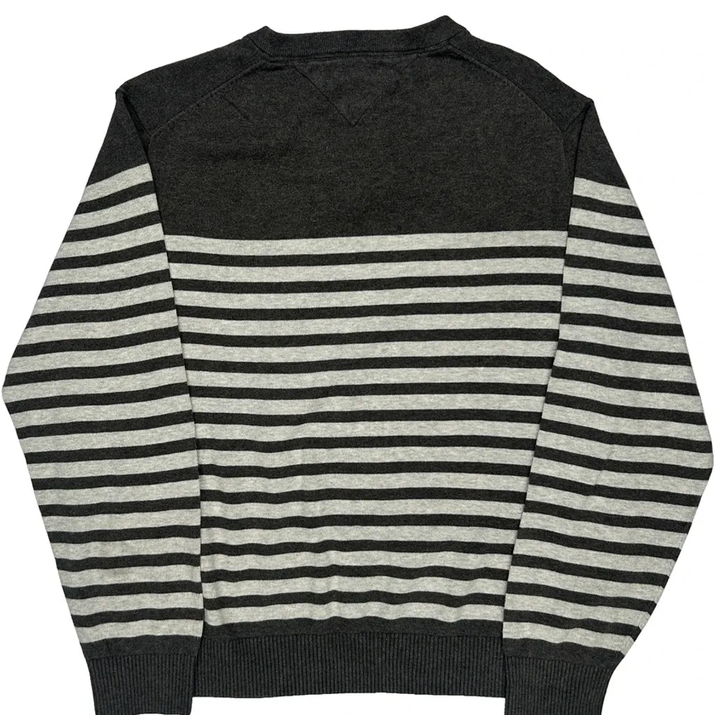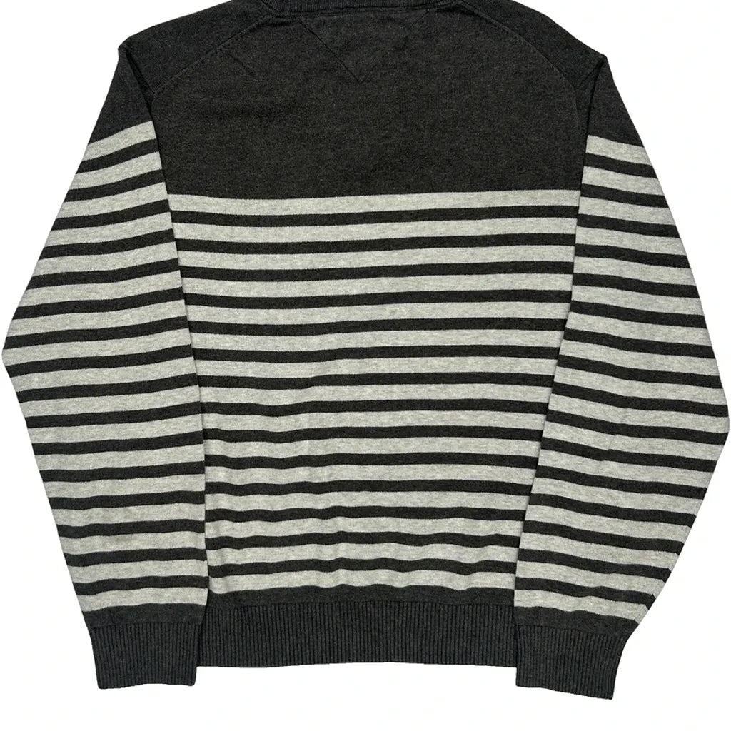Tommy Hilfiger Striped Jumper - Large Black Cotton