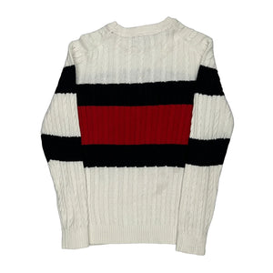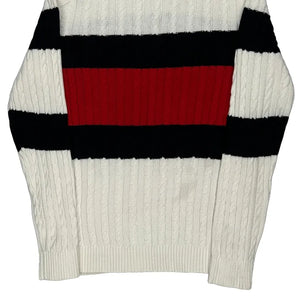 White, Black, And Red Striped Cable Knit Top
