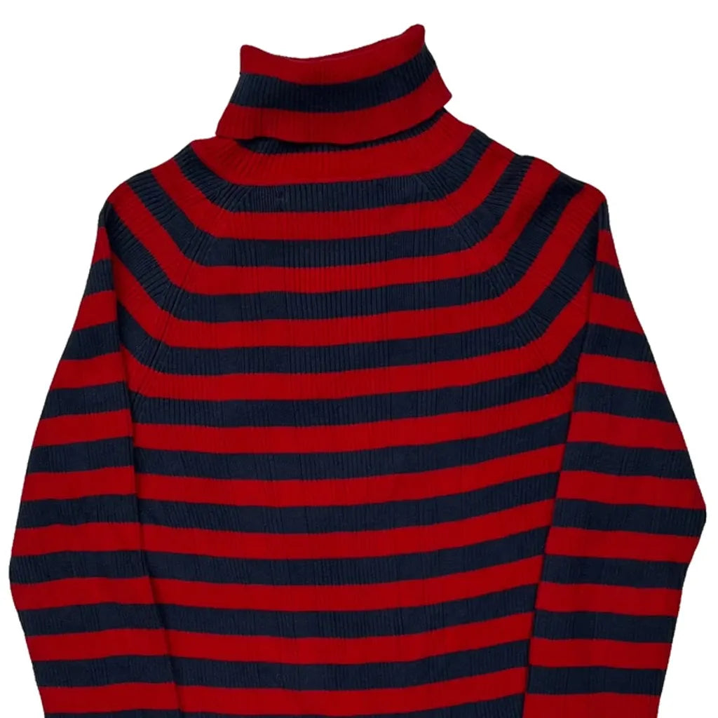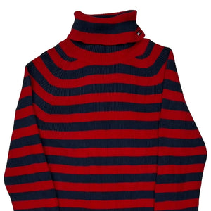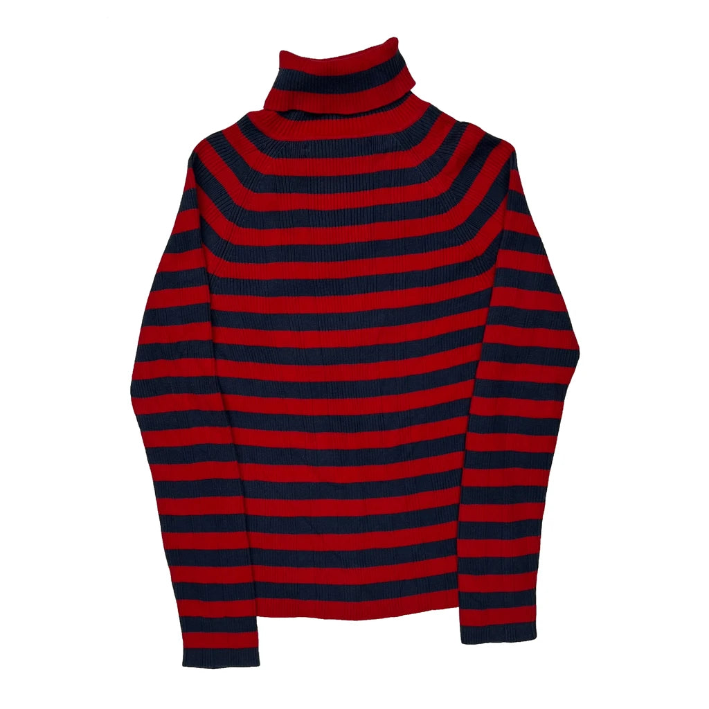 Red And Navy Striped Turtleneck Top