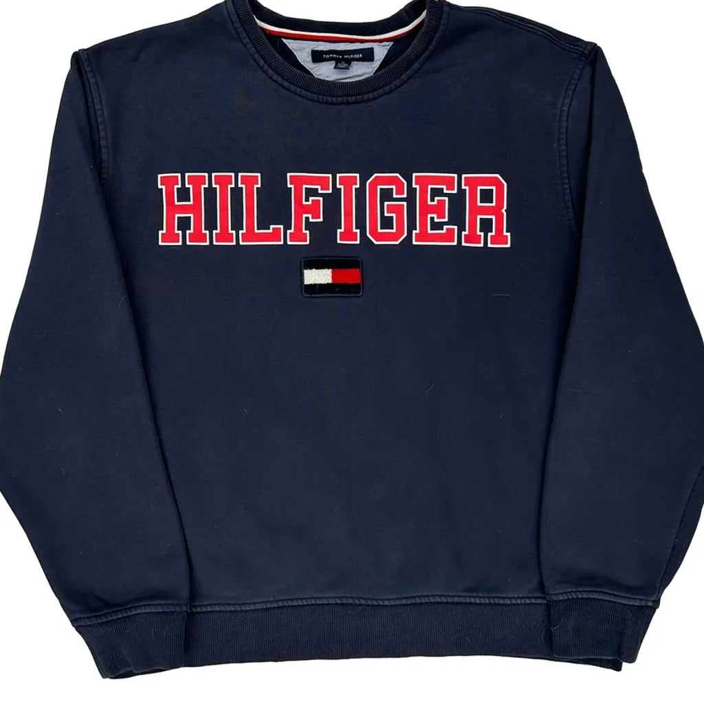 Tommy Hilfiger Spellout Long Sleeve T-Shirt - XL Navy Cotton
