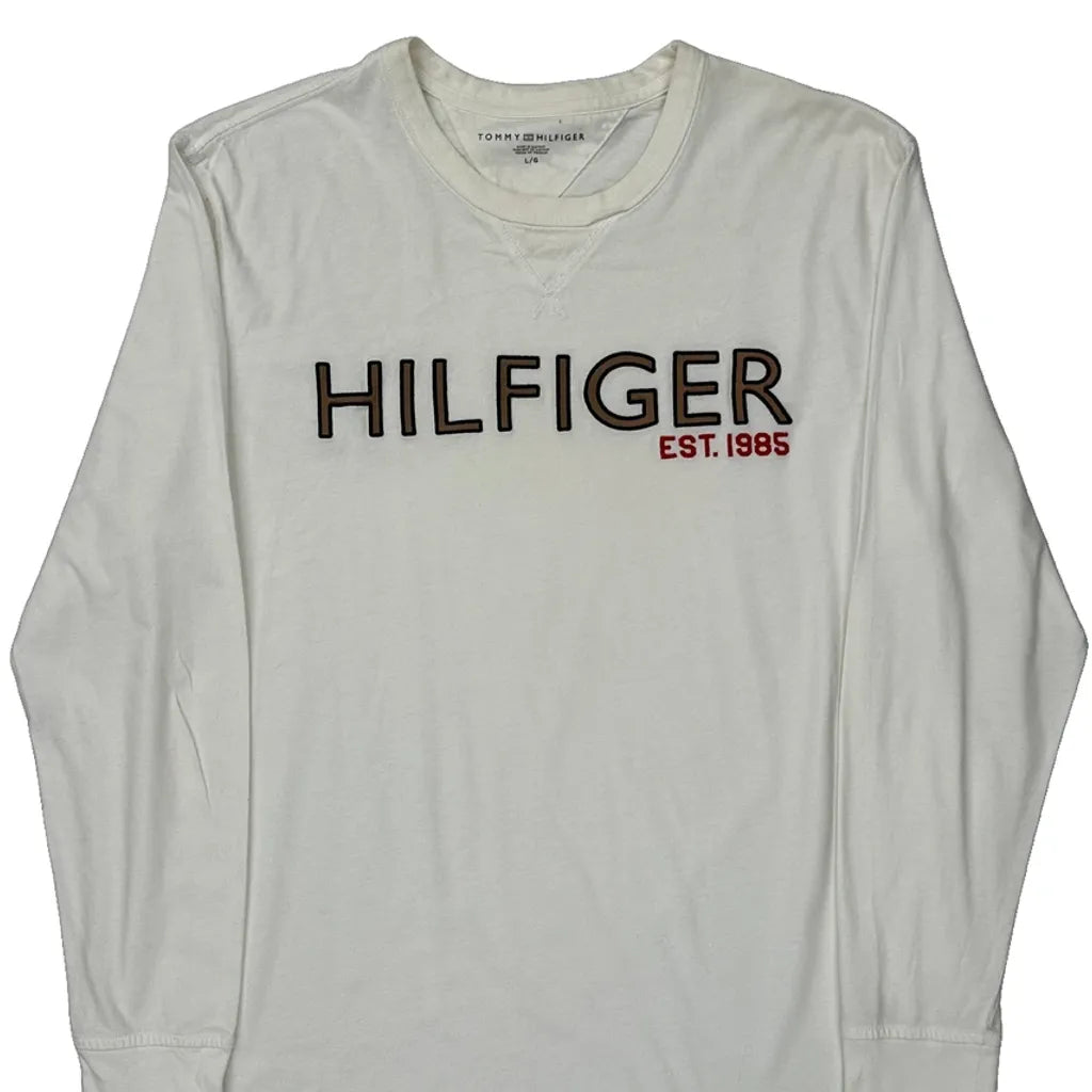 Tommy Hilfiger Spellout Long Sleeve T-Shirt - Large White Cotton