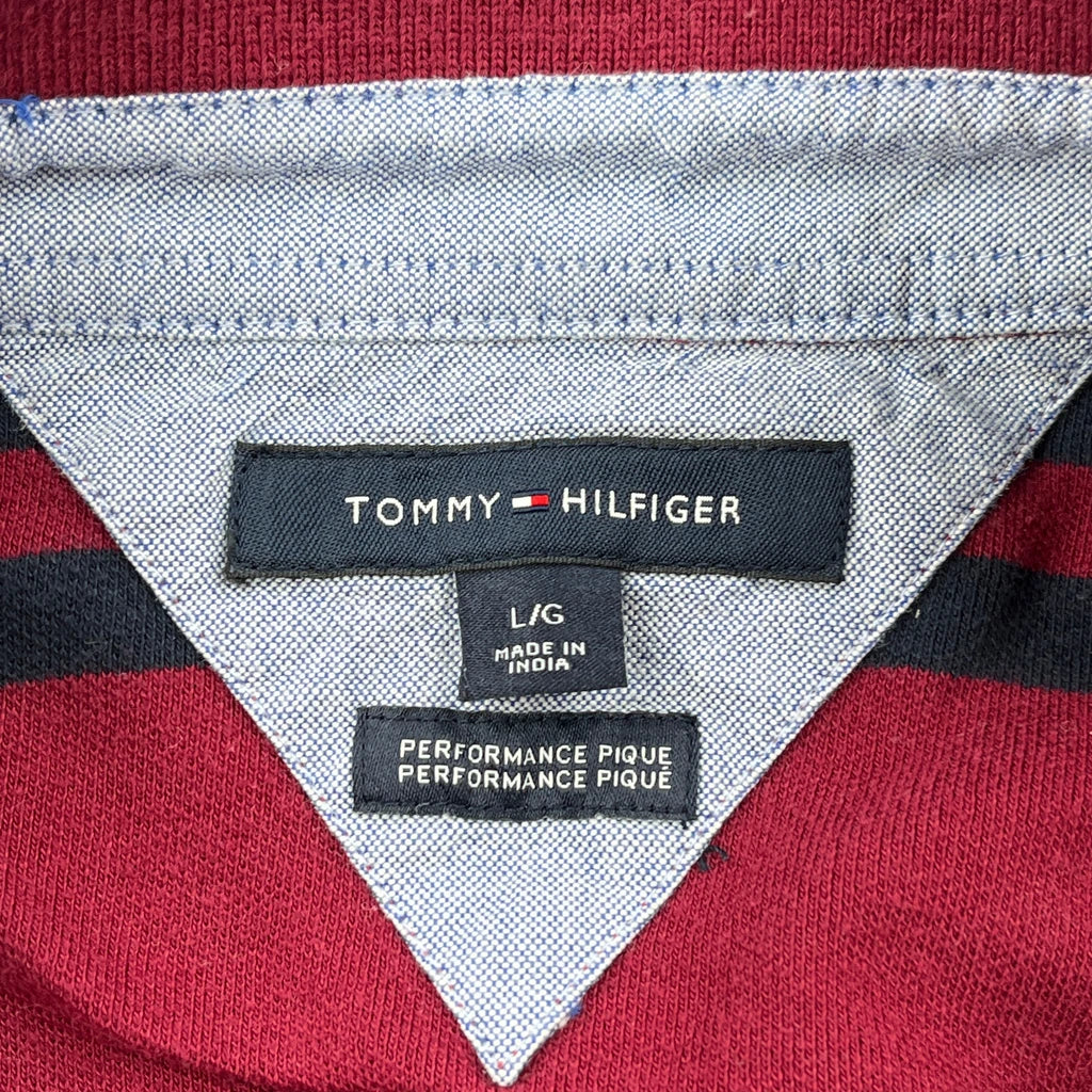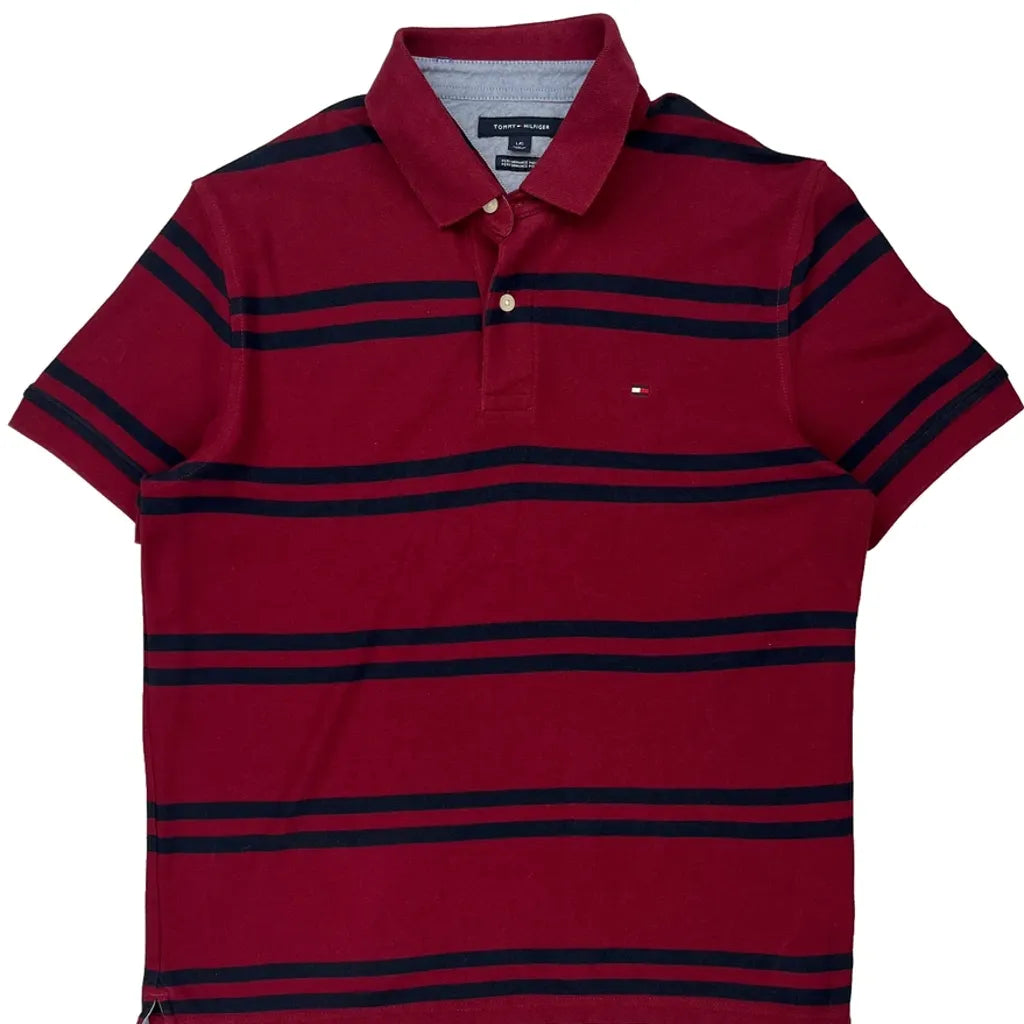 Tommy Hilfiger Striped Polo Shirt - Large Burgundy Cotton