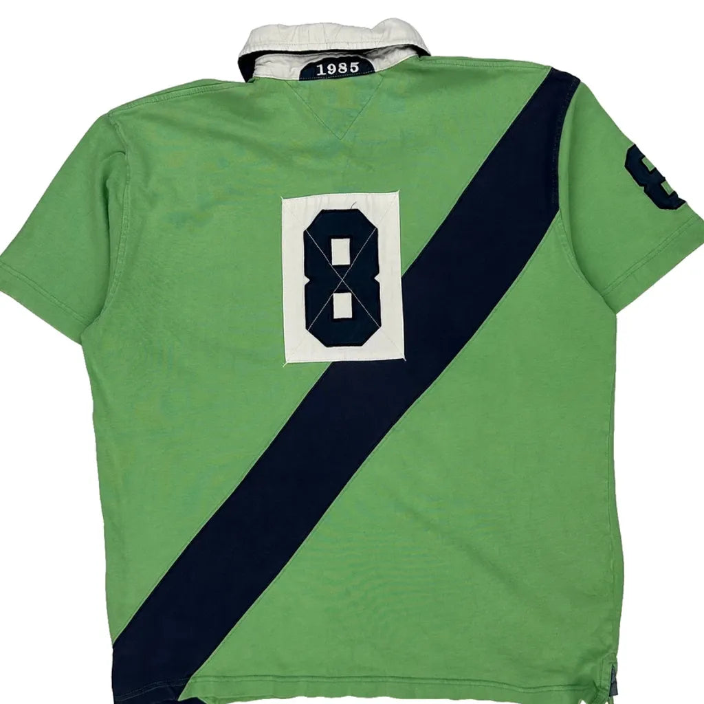 Tommy Hilfiger Striped Polo Shirt - Large Green Cotton