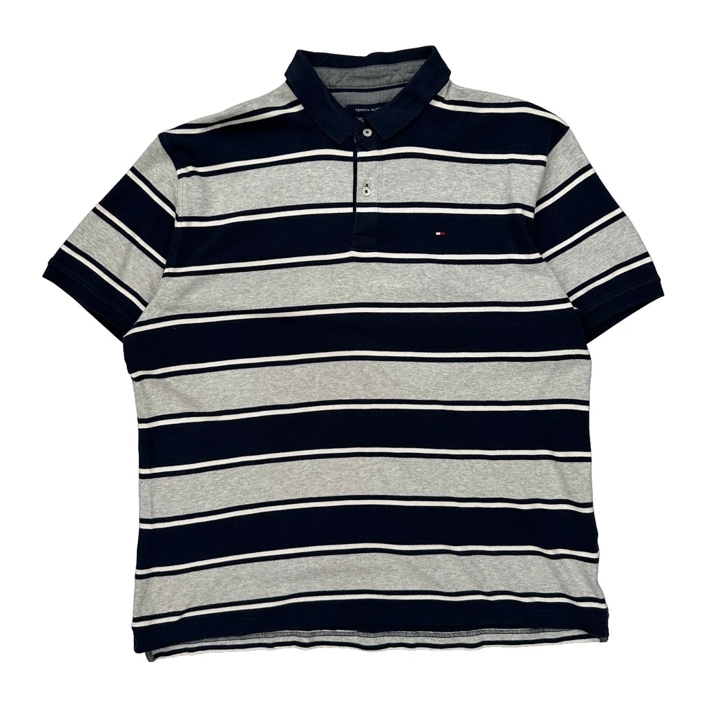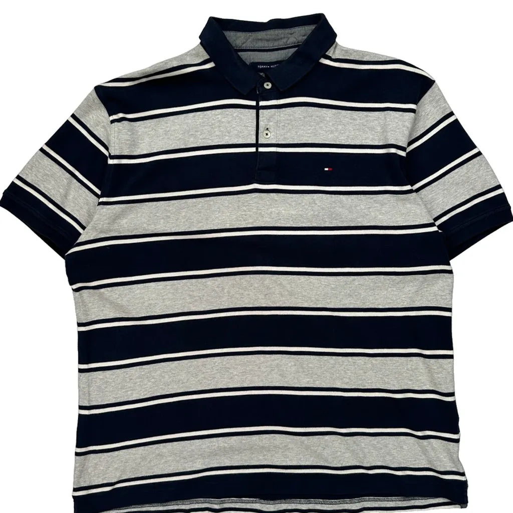 Tommy Hilfiger Striped Polo Shirt - XL Grey Cotton