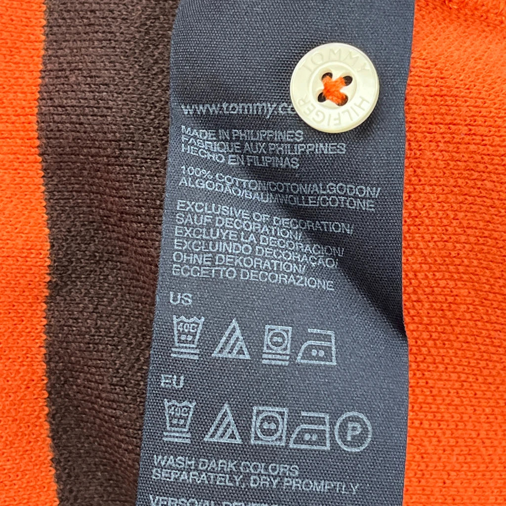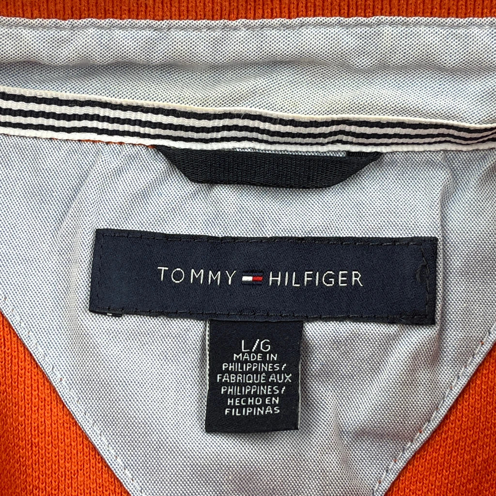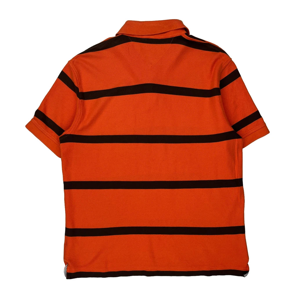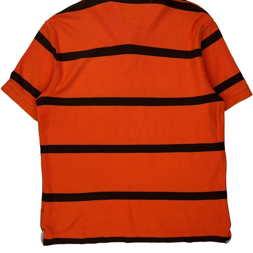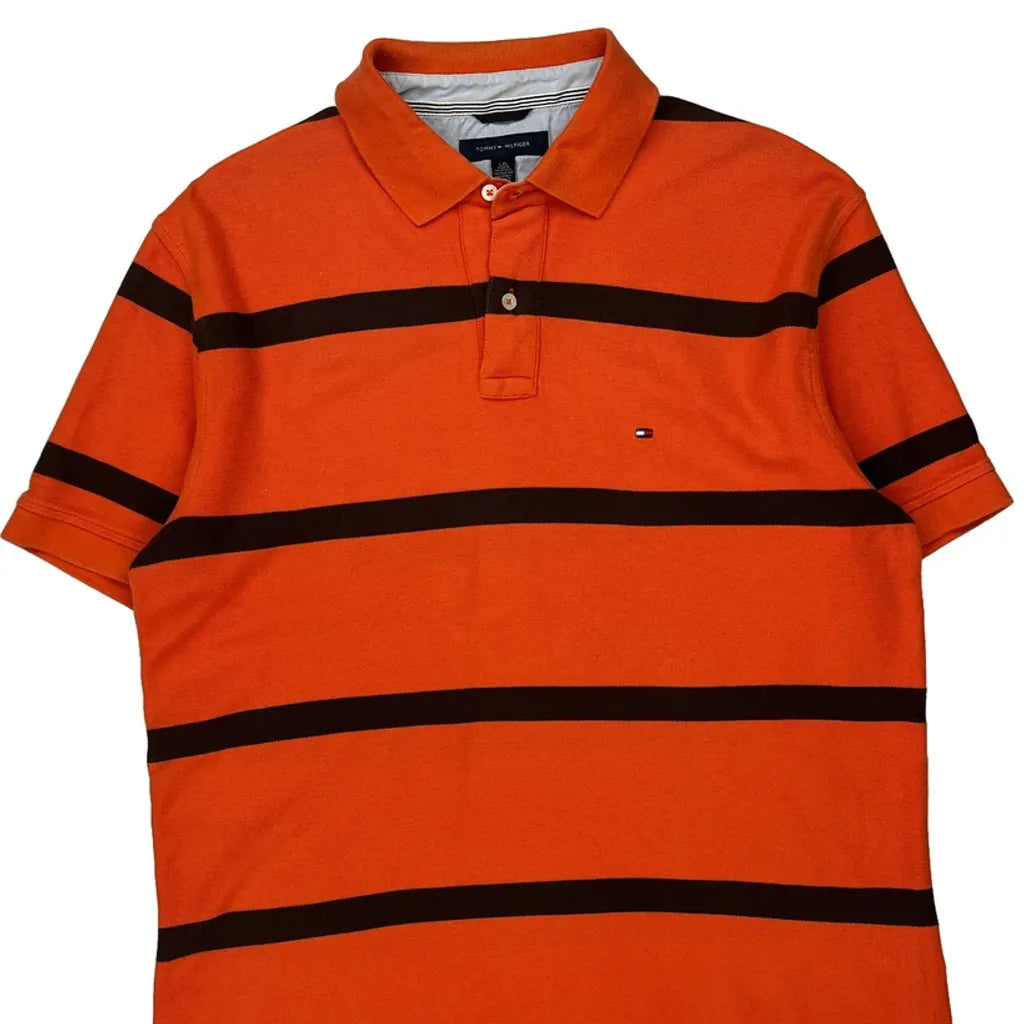 Tommy Hilfiger Striped Polo Shirt - Large Orange Cotton