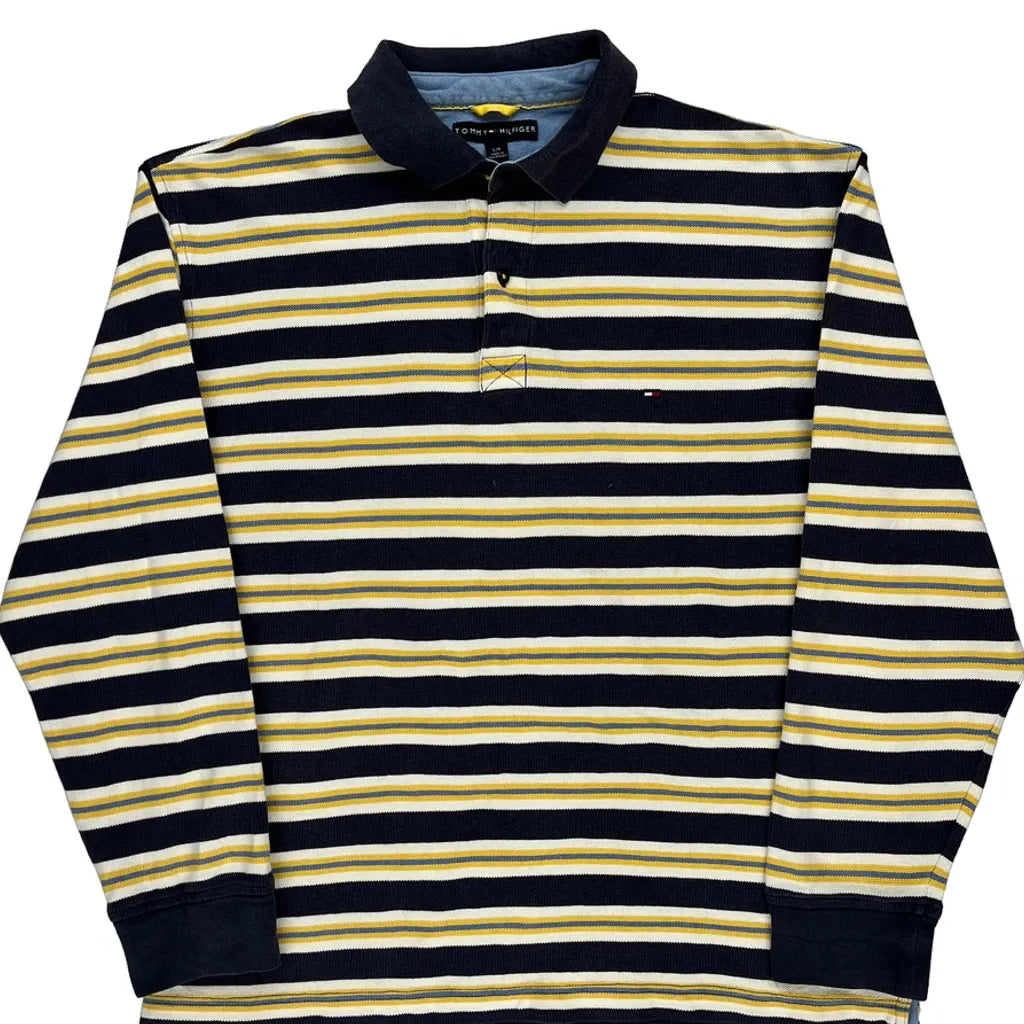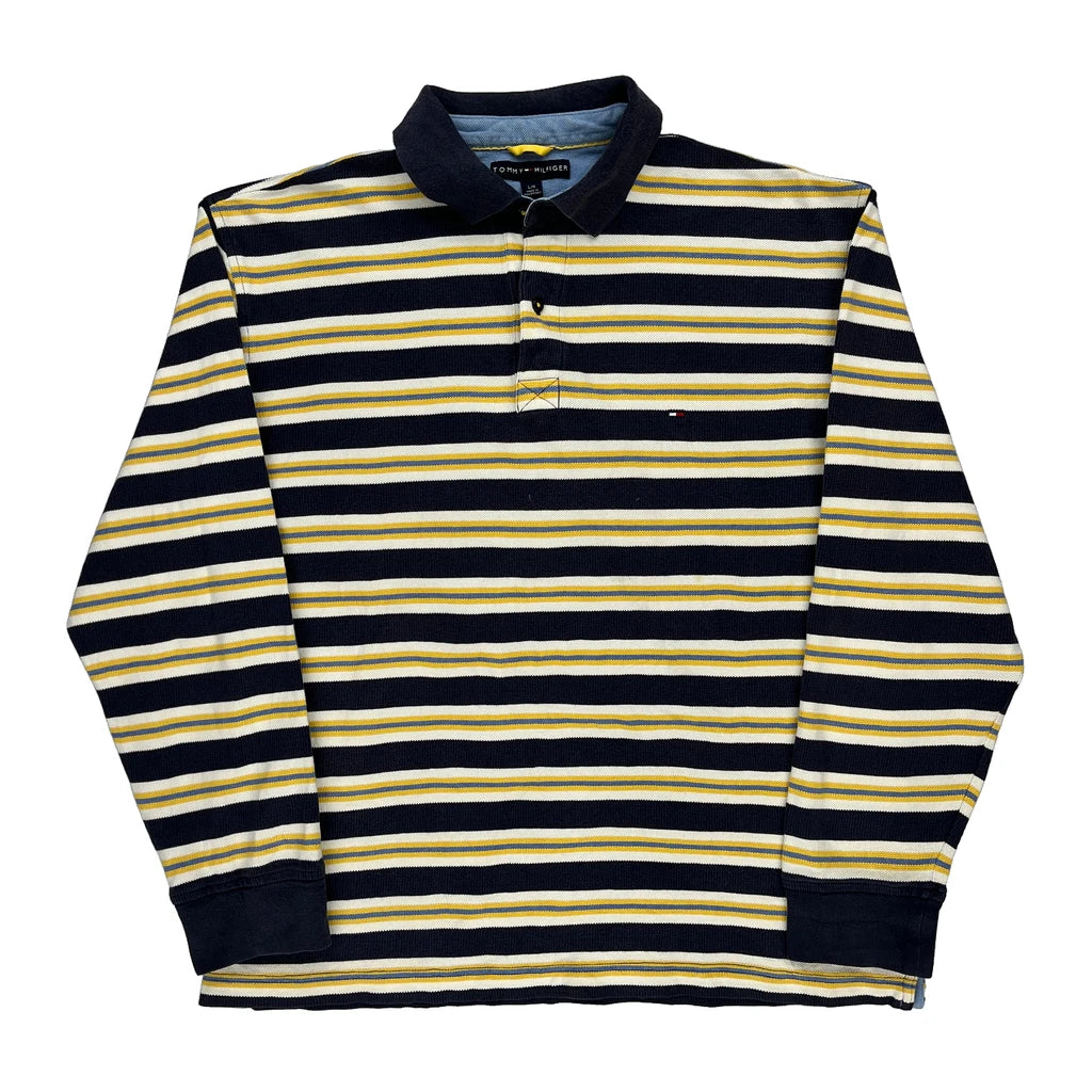Tommy Hilfiger Striped Rugby Shirt - Large Navy Cotton