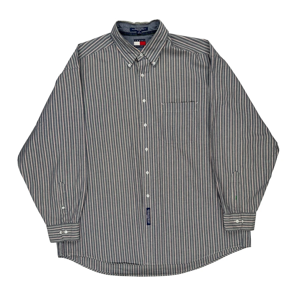 Tommy Hilfiger Striped Shirt - 2XL Grey Cotton