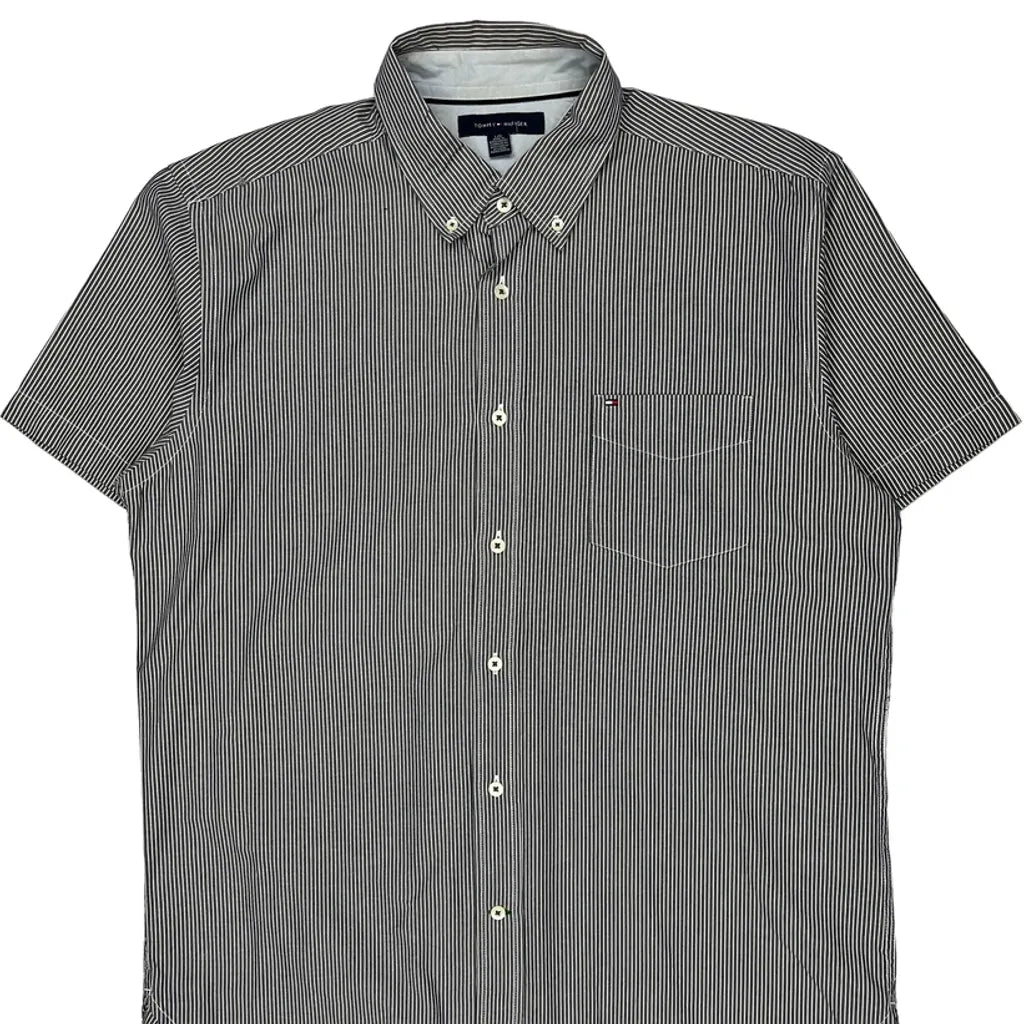 Tommy Hilfiger Striped Short Sleeve Shirt - Large Black & White Cotton