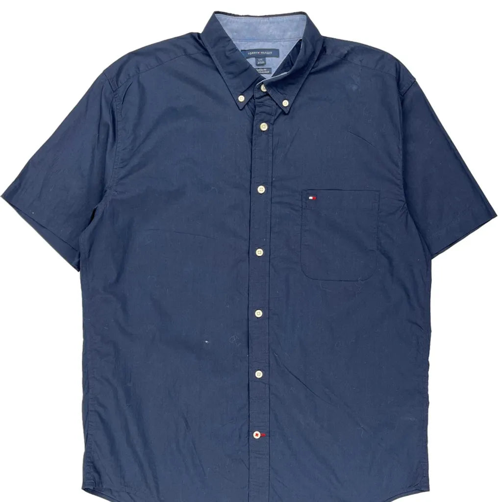 Tommy Hilfiger Short Sleeve Shirt - Large Blue Cotton