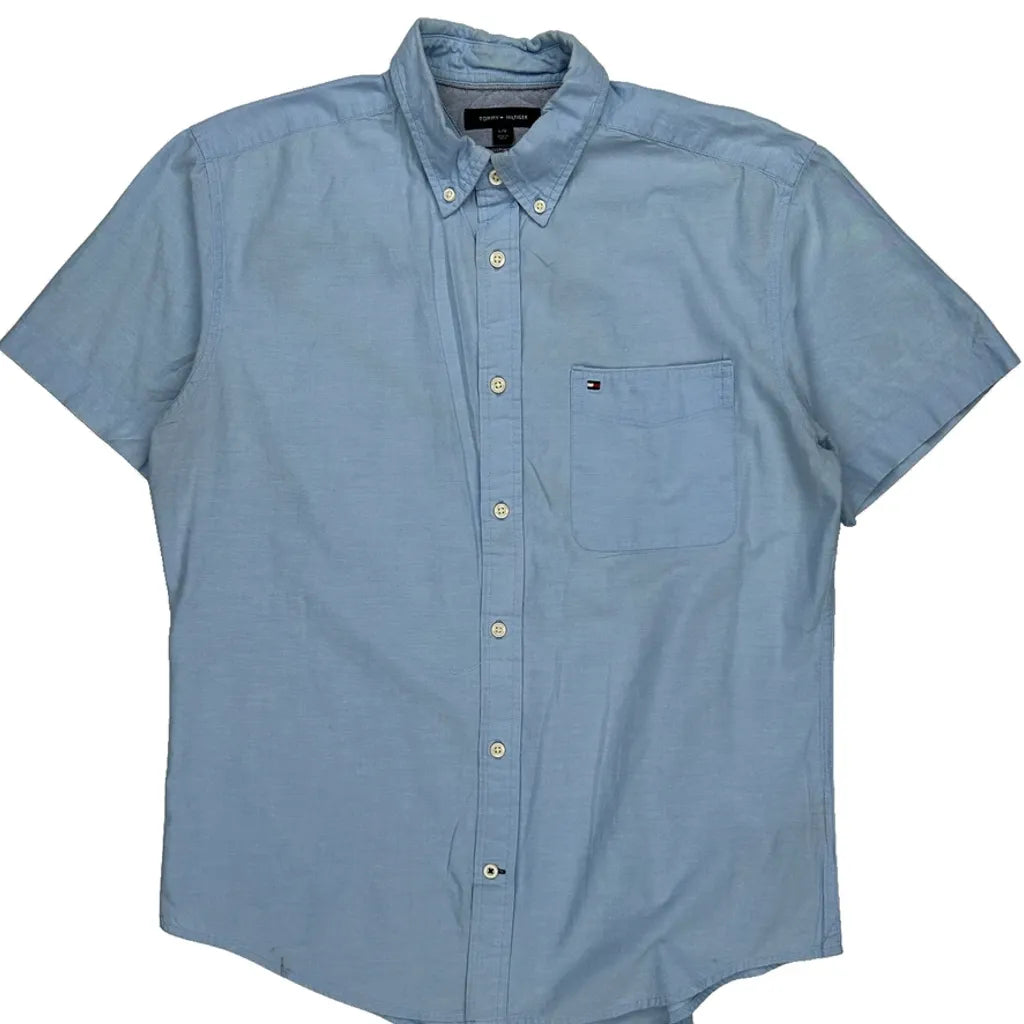 Tommy Hilfiger Short Sleeve Shirt - Large Blue Cotton