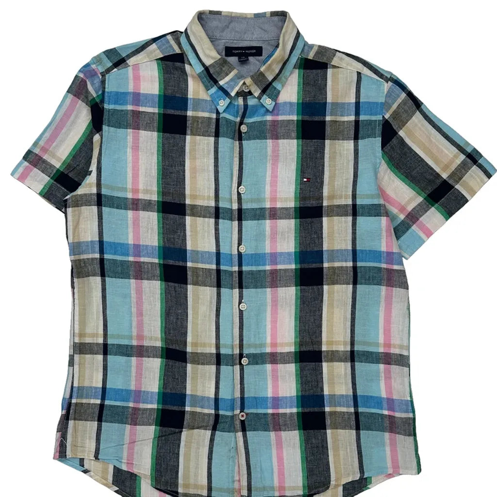 Tommy Hilfiger Checked Short Sleeve Shirt - Large Multicoloured Cotton