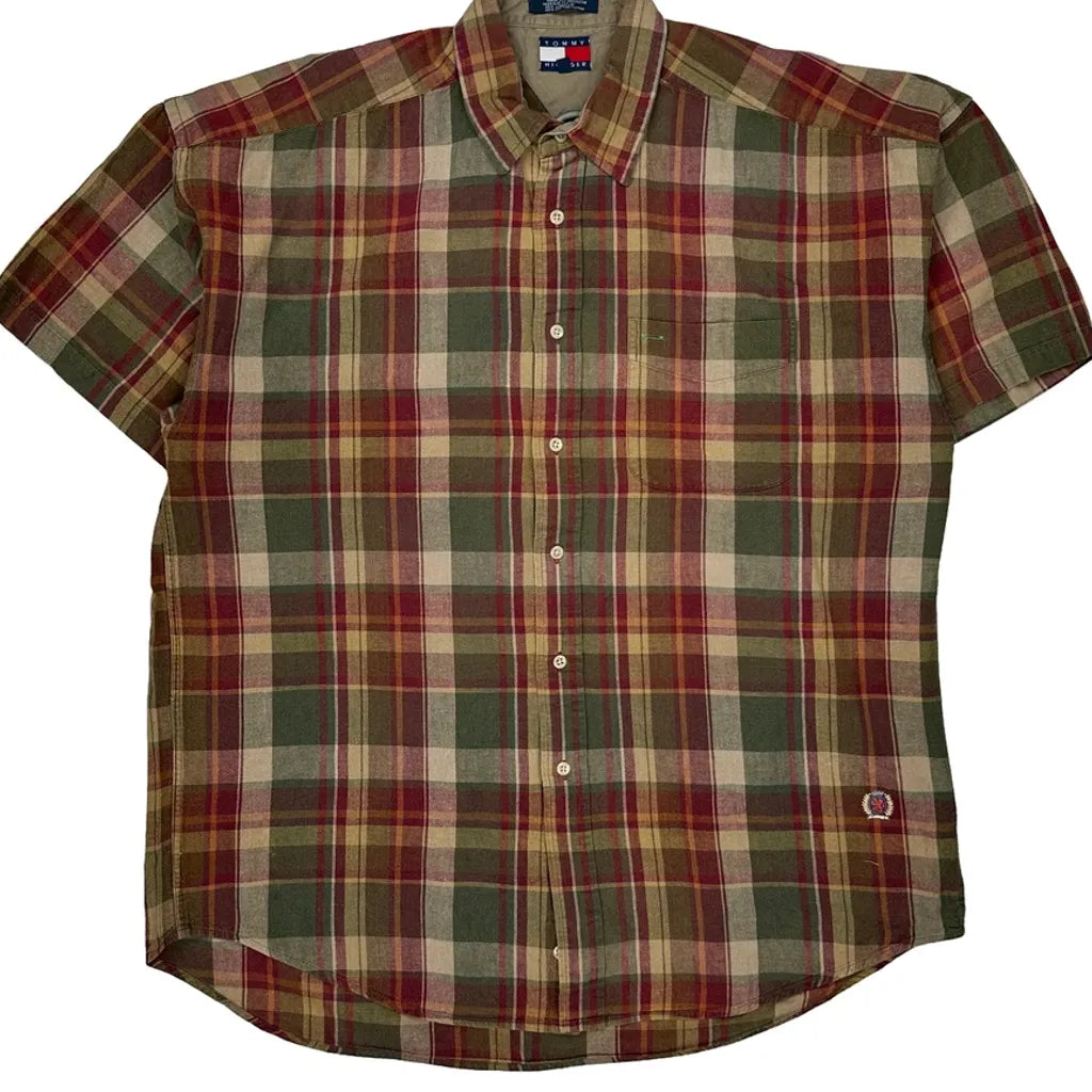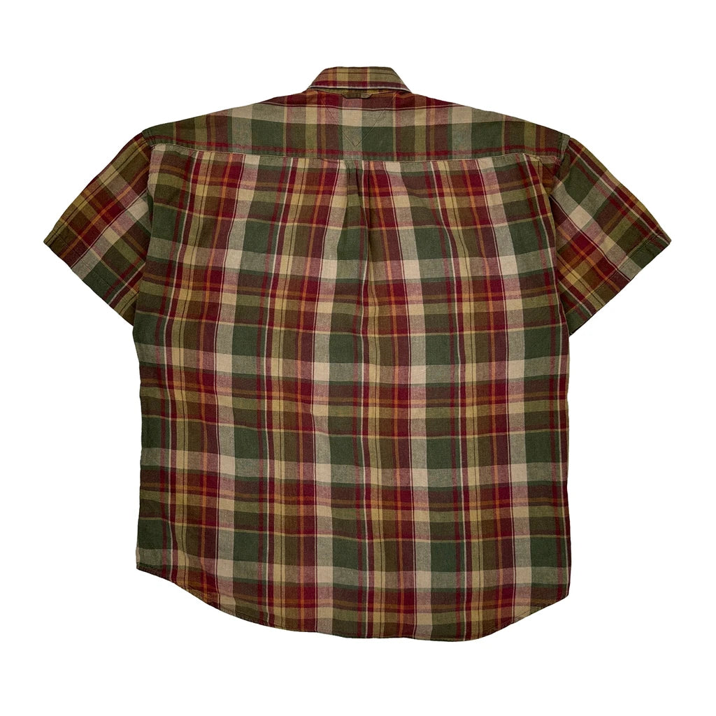 Tommy Hilfiger Checked Short Sleeve Shirt - Medium Multicoloured Linen Blend